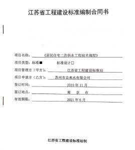 為保障用水安全,江蘇省于2014年出臺(tái)了《居民住宅二次供水工程技術(shù)規(guī)程》,對(duì)二次供水工程的各個(gè)環(huán)節(jié)進(jìn)行了規(guī)范。近年來(lái),許多新材料、新設(shè)備、新工藝在二次供水領(lǐng)域不斷涌現(xiàn),原規(guī)程的部分條款已無(wú)法適應(yīng)當(dāng)前形勢(shì),對(duì)該技術(shù)規(guī)程的修訂已成為我省城市發(fā)展的迫切需求。