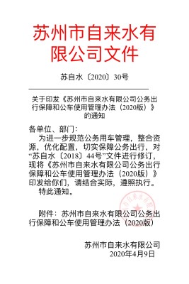 為更好地保障公司車輛高效運行,細化日常管理措施,公司辦公室聯(lián)合安全管理處修訂完善《蘇州市自來水有限公司公務出行保障和公車使用管理辦法》,對公務用車的調度使用、維修保養(yǎng)、安全檢查等方面做出明確規(guī)定,提升公務用車管理使用的規(guī)范化、安全性。