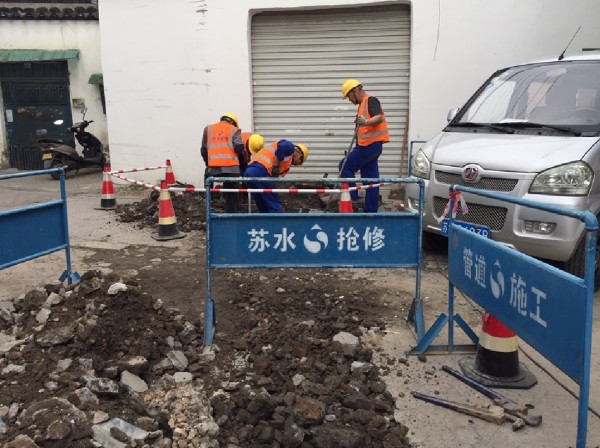 保健路22號廠區(qū)反應(yīng),一直存在自來水壓力偏小的問題。施工人員對已出現(xiàn)堵塞、滲漏,使用了20多年的水管進(jìn)行了更換。施工人員還對新水管進(jìn)行埋深處理。原計(jì)劃一天施工完,實(shí)際只用了半天不到的時(shí)間。