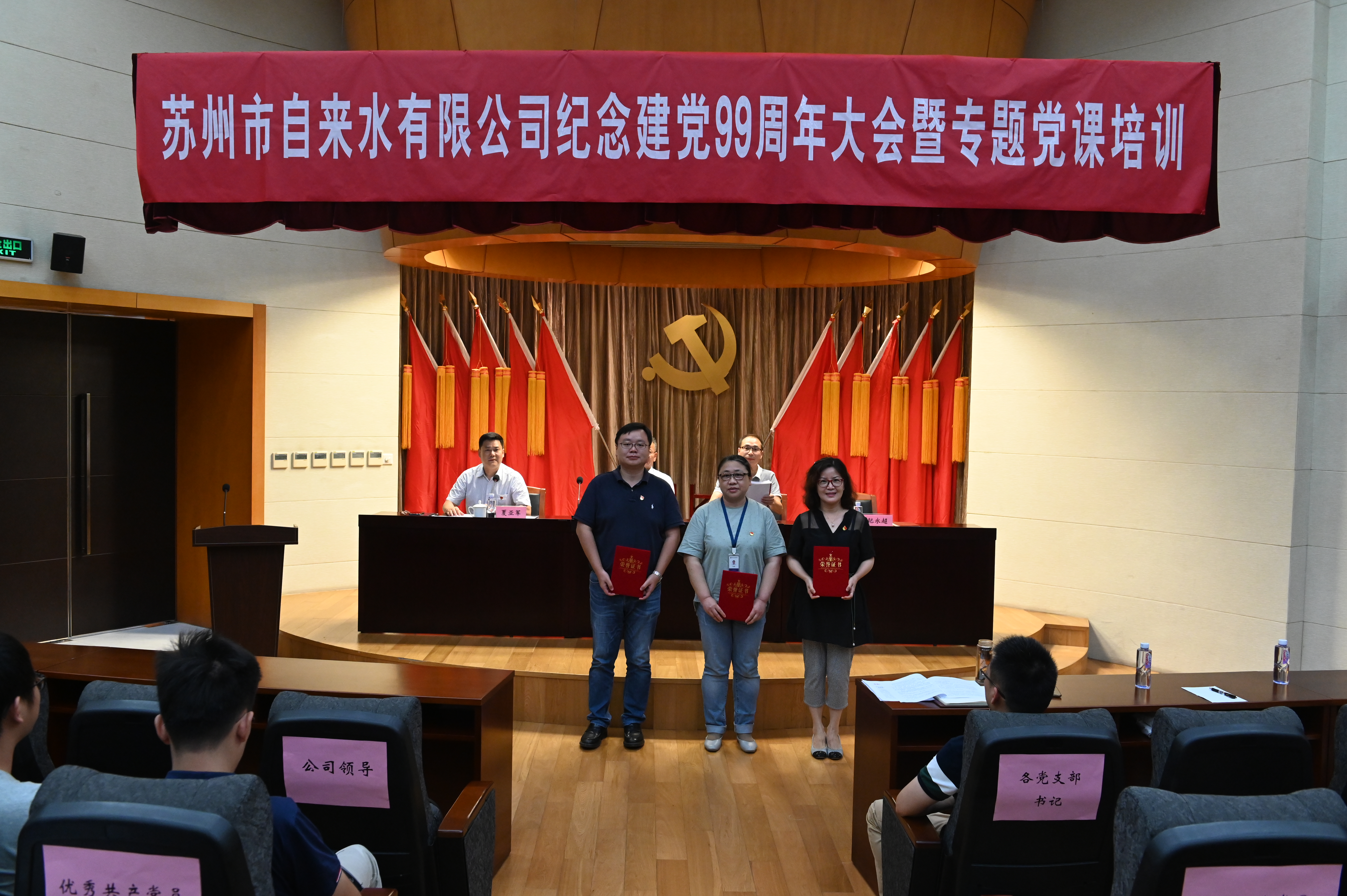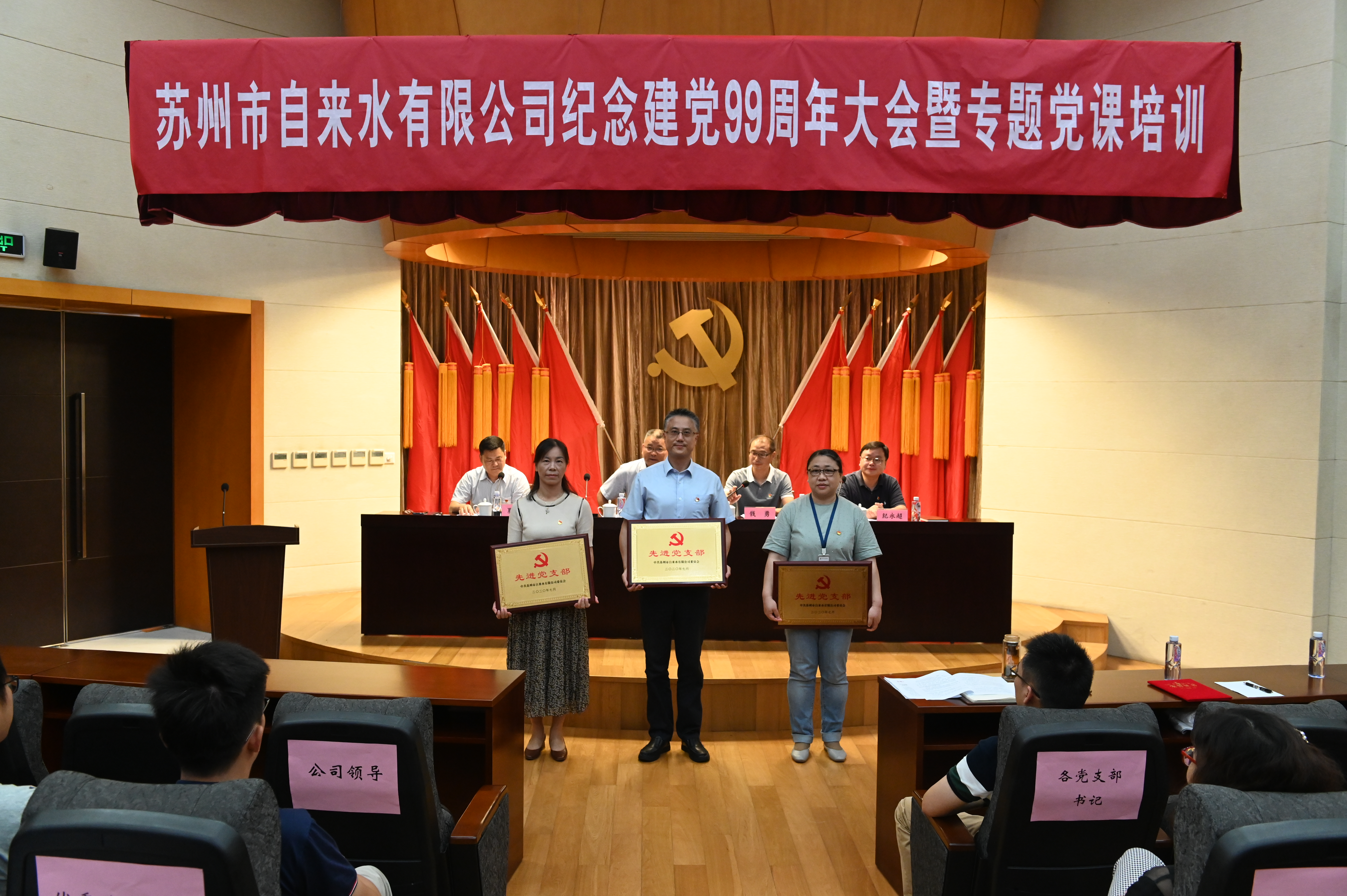 會上,公司黨委副書記、副董事長、總經(jīng)理錢勇宣讀了“2019-2020年度公司先進黨支部、優(yōu)秀黨務(wù)工作者和優(yōu)秀共產(chǎn)黨員表彰決定”,號召全體黨員緊緊圍繞“供水安全、服務(wù)保障”兩大主題,走在前、攀新高。獲獎集體和個人代表先后上臺作交流發(fā)言,分享了新時期黨員勇于擔當、奮發(fā)作為的先進事跡。