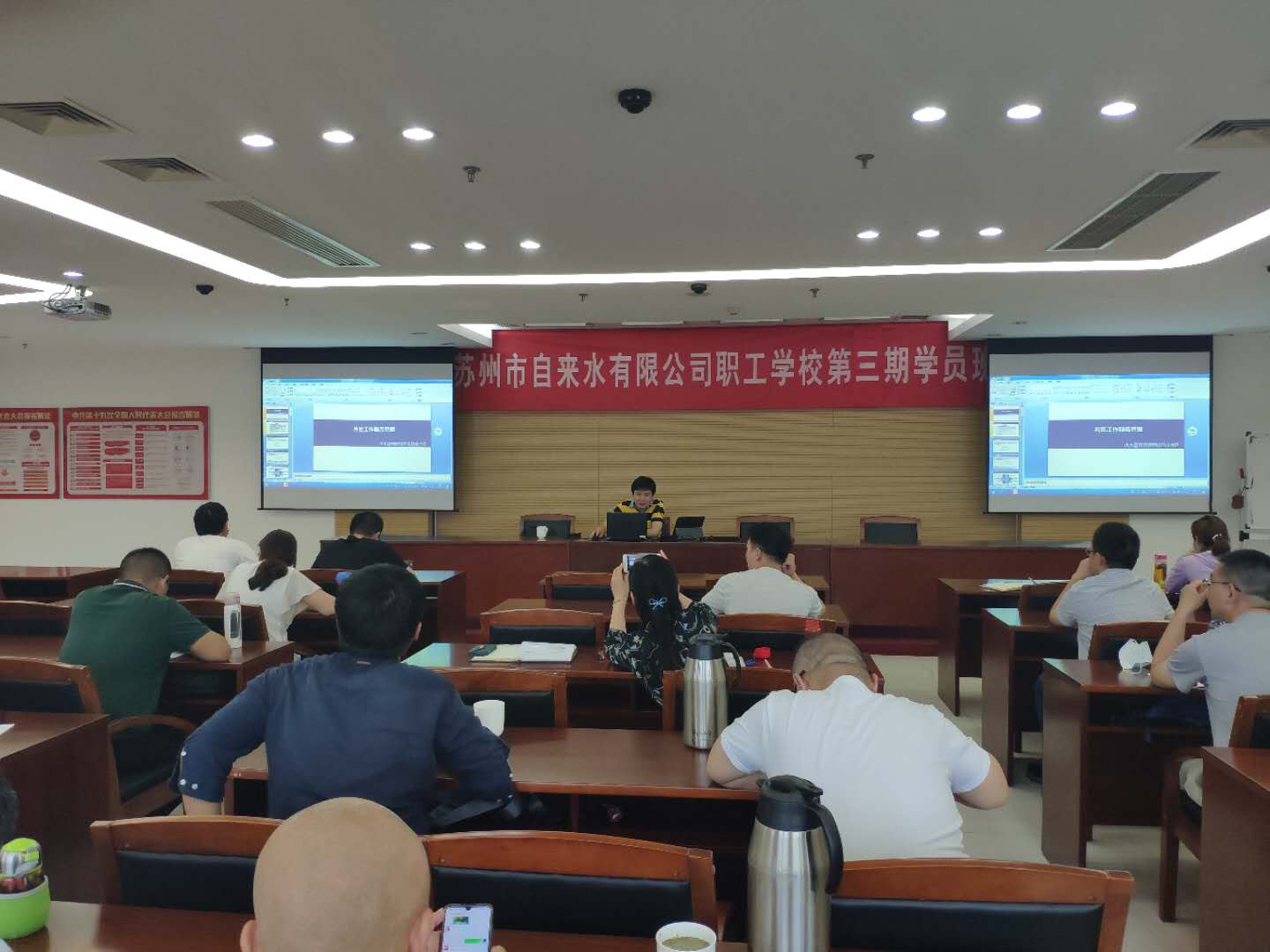 第二期水廠運行培訓班上,來自各生產(chǎn)部門的講師圍繞自控系統(tǒng)應(yīng)用、高壓設(shè)備知識、電氣預防性試驗技術(shù)等方面授課,水廠生產(chǎn)一線的“技能帶頭人”們結(jié)合個人實踐、自我提升、崗位成長經(jīng)歷授課,讓學員們獲益匪淺。課程后期,學員們實地參觀南通自來水公司崇海水廠,詳細了解生產(chǎn)尾泥規(guī)范化處置方面的經(jīng)驗做法,豐富自身業(yè)務(wù)和管理技能。