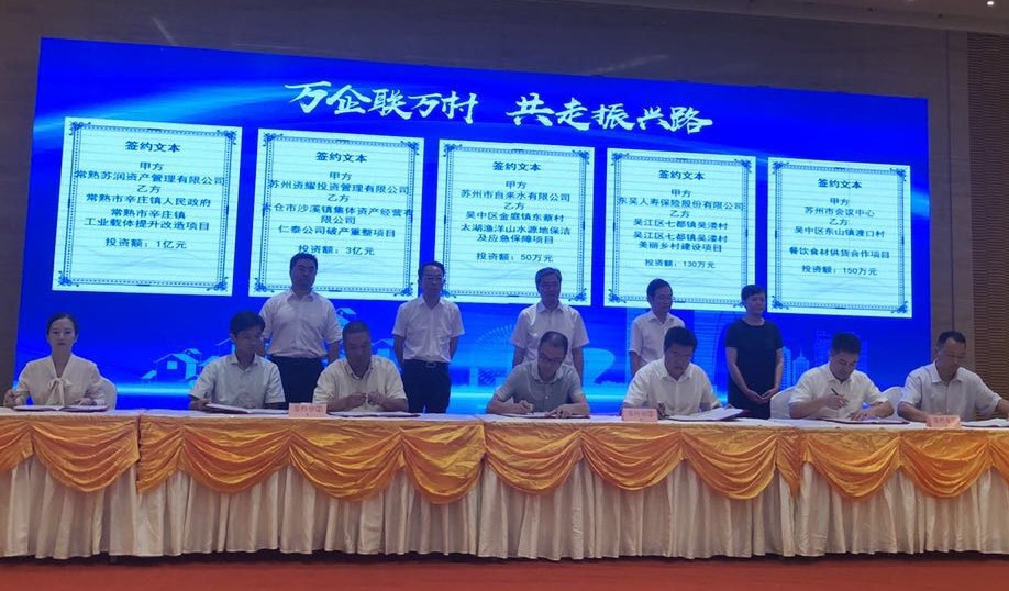 為深入貫徹落實(shí)省委省政府、市委市政府關(guān)于開(kāi)展“萬(wàn)企聯(lián)萬(wàn)村 共走振興路”行動(dòng)部署要求,蘇州市國(guó)資委于8月17日舉辦全市國(guó)資國(guó)企企村合作項(xiàng)目簽約活動(dòng)。市水務(wù)集團(tuán)黨委副書記、副董事長(zhǎng)、總經(jīng)理陳隆,市自來(lái)水公司黨委副書記、副董事長(zhǎng)、總經(jīng)理錢勇出席活動(dòng)并簽署《項(xiàng)目聯(lián)建協(xié)議書》。