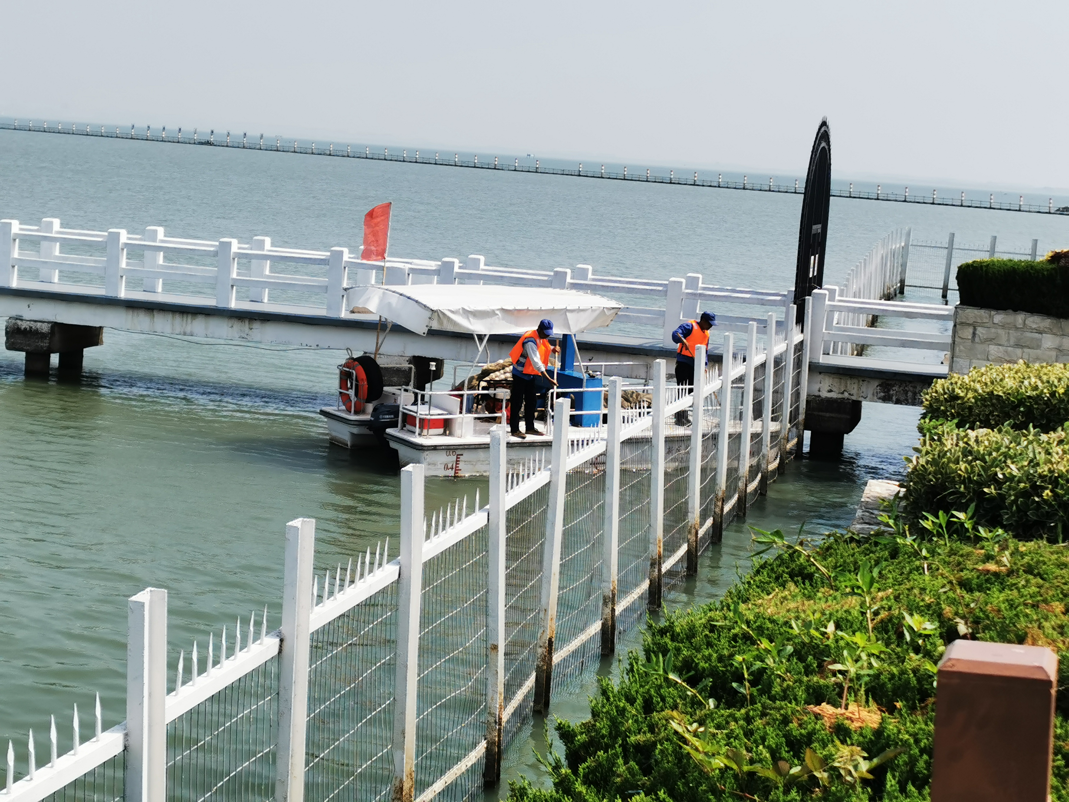 二是嚴(yán)守源頭安全,完善防控措施。漁洋山和金墅港水源地更新了新型防藻圍隔,有效抵御藍(lán)藻入侵一級(jí)保護(hù)區(qū)。新購(gòu)入四艘“藍(lán)藻智能清理船”,配合無(wú)人機(jī)巡視和水源地網(wǎng)格化管理模式,進(jìn)一步提升藍(lán)藻預(yù)警和防控的有效性、及時(shí)性。加強(qiáng)曝氣、推流、圍隔、打撈船等除藻控藻設(shè)備的使用和維護(hù),確保各類防藻設(shè)備設(shè)施的良好運(yùn)行。加大應(yīng)急物資的采購(gòu)儲(chǔ)備,在常規(guī)打撈隊(duì)伍基礎(chǔ)上增設(shè)應(yīng)急打撈力量,切實(shí)提升藍(lán)藻防控應(yīng)急處置水平。