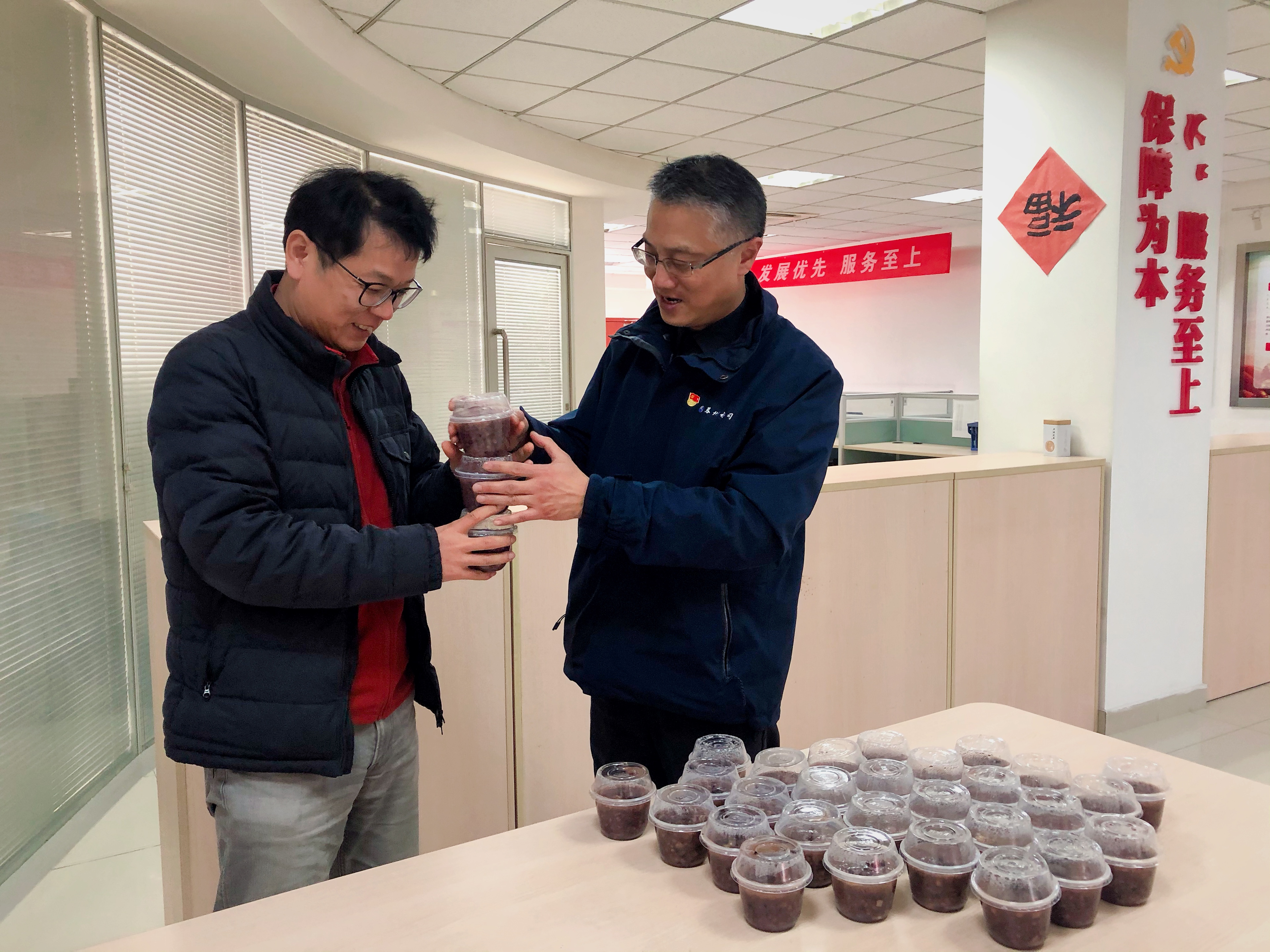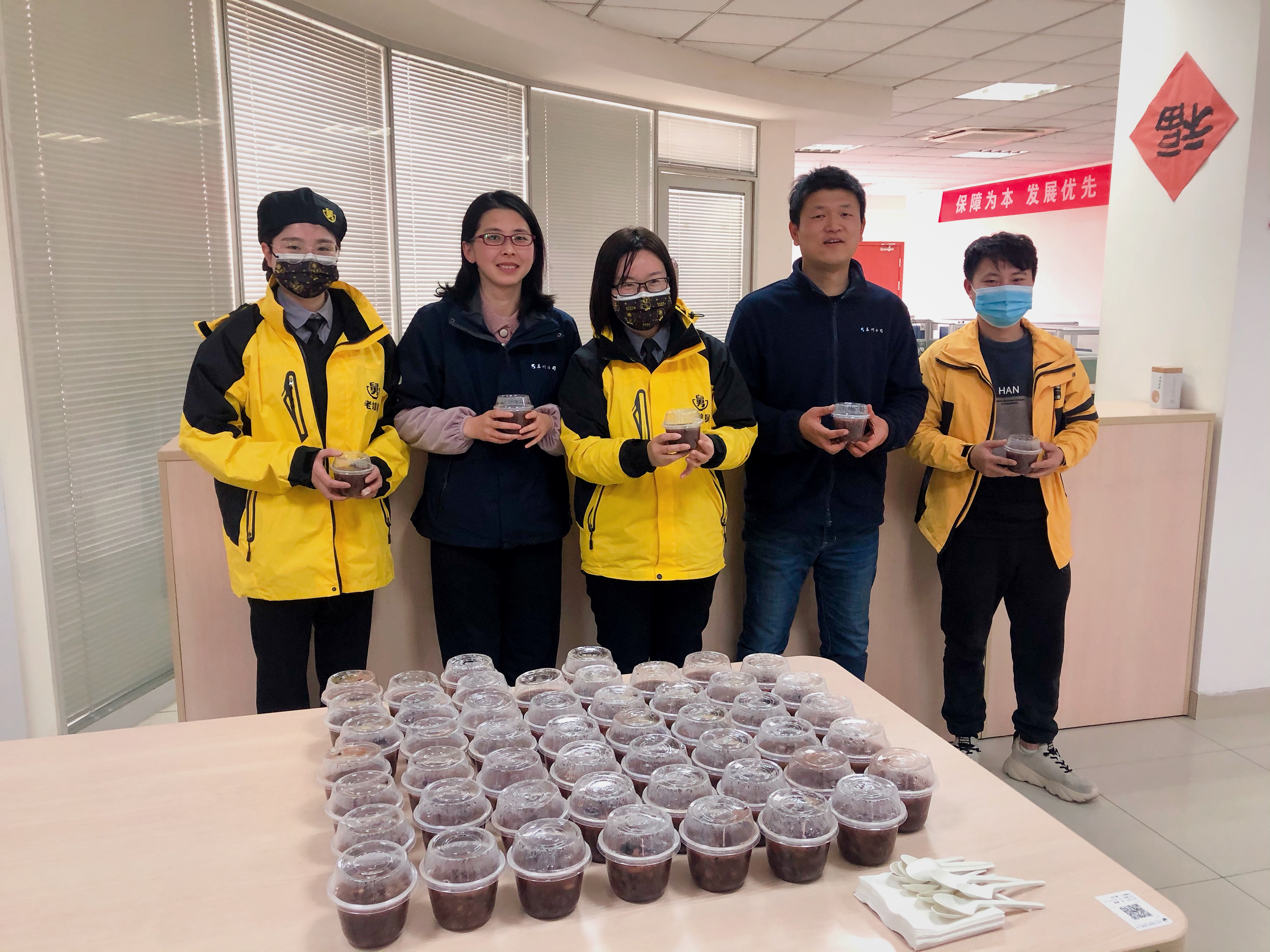 此次活動(dòng)中,公司工會(huì)、各黨支部聯(lián)合老娘舅餐飲有限公司的志愿者,為職工們遞上臘八粥并送上新年祝福。一份份愛心臘八粥被送到了認(rèn)真堅(jiān)守在崗位上的職工手中,一份份暖意在這個(gè)冬日流淌。