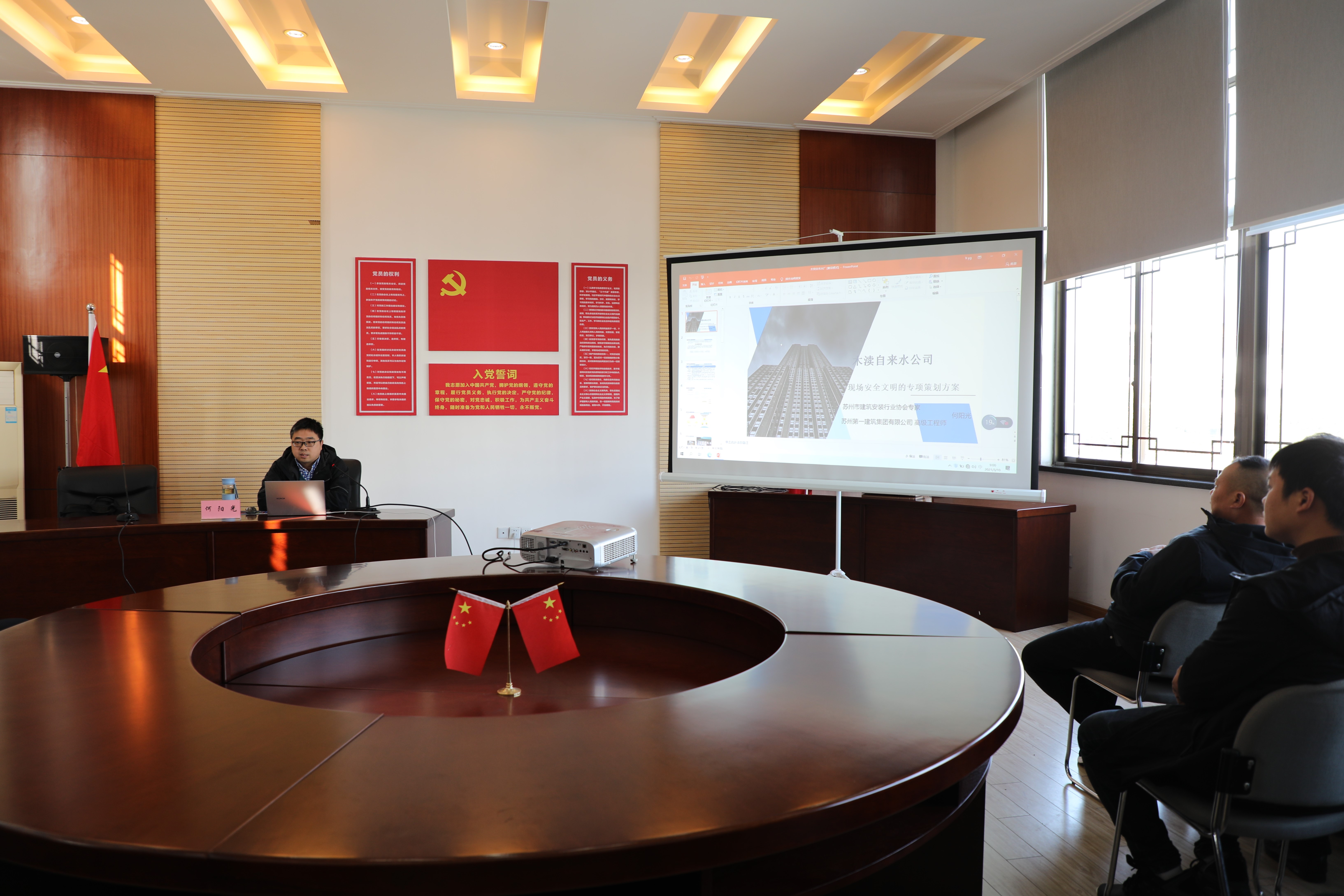 為加強(qiáng)公司現(xiàn)場文明施工管理,維護(hù)現(xiàn)場環(huán)境整潔,保障人身和財產(chǎn)安全,促進(jìn)文明施工規(guī)范化、標(biāo)準(zhǔn)化、制度化,近日,公司特邀請?zhí)K州市建筑安裝行業(yè)協(xié)會專家何陽光,為部分職工及施工單位負(fù)責(zé)人現(xiàn)場解讀“現(xiàn)場安全文明施工的專項策劃方案”。