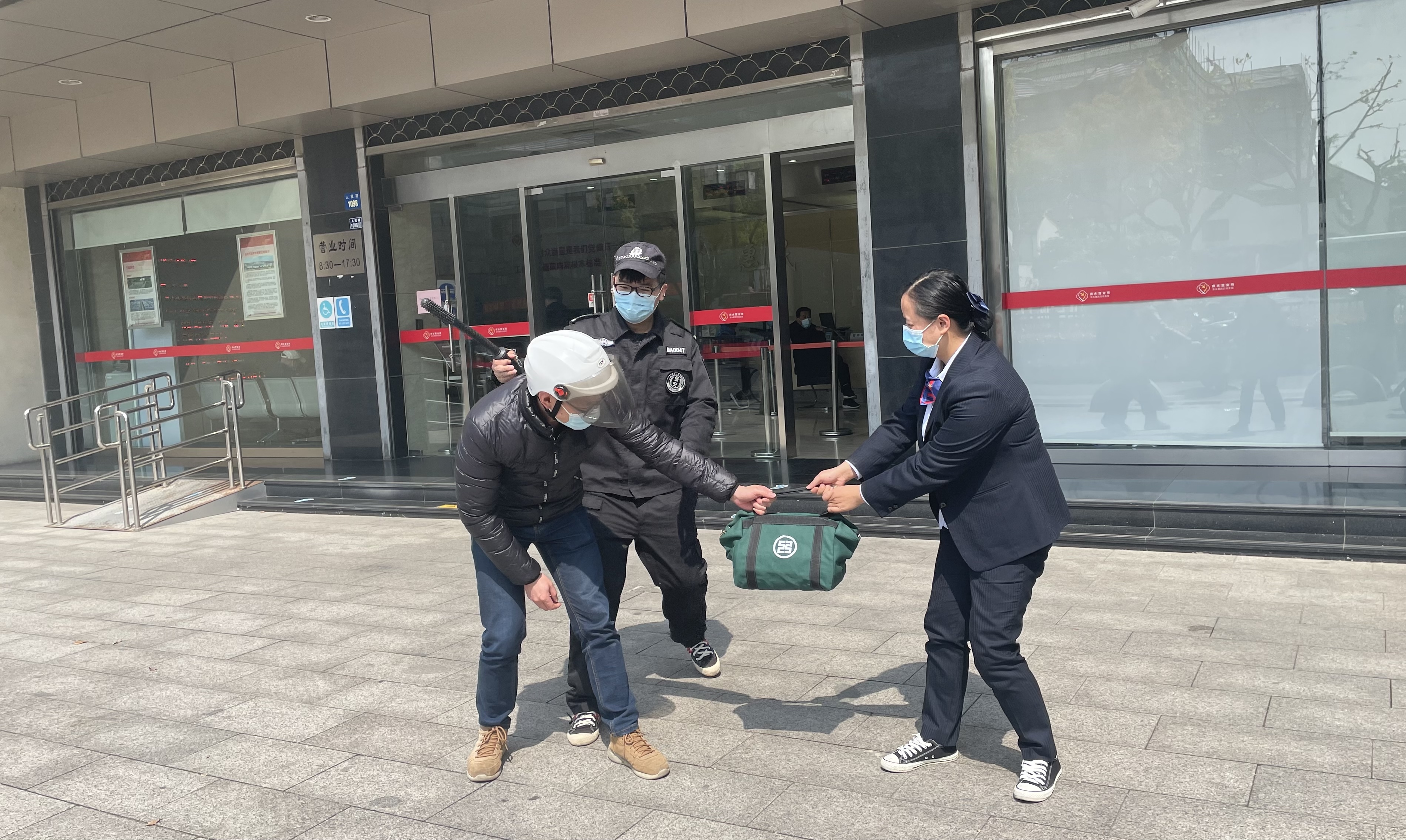 “紅藍(lán)對抗”系列演練以“外來尋釁滋事者強(qiáng)闖水廠、大廳”為主題。演練開始,一名不明身份人員欲強(qiáng)闖供水生產(chǎn)服務(wù)區(qū)域,情況“危急”。保安隊(duì)長迅速帶領(lǐng)保安人員趕赴現(xiàn)場,同時(shí)向?qū)俚嘏沙鏊娫拡?bào)警?,F(xiàn)場保安人員相互配合,使用警棍、鋼叉及盾牌將“入侵”男子制服并擒獲,最后移交公安派出所,有效控制事態(tài)發(fā)展。演練結(jié)束后,公司相關(guān)部門及時(shí)開展演練流程分析,查找不足,及時(shí)糾正問題。