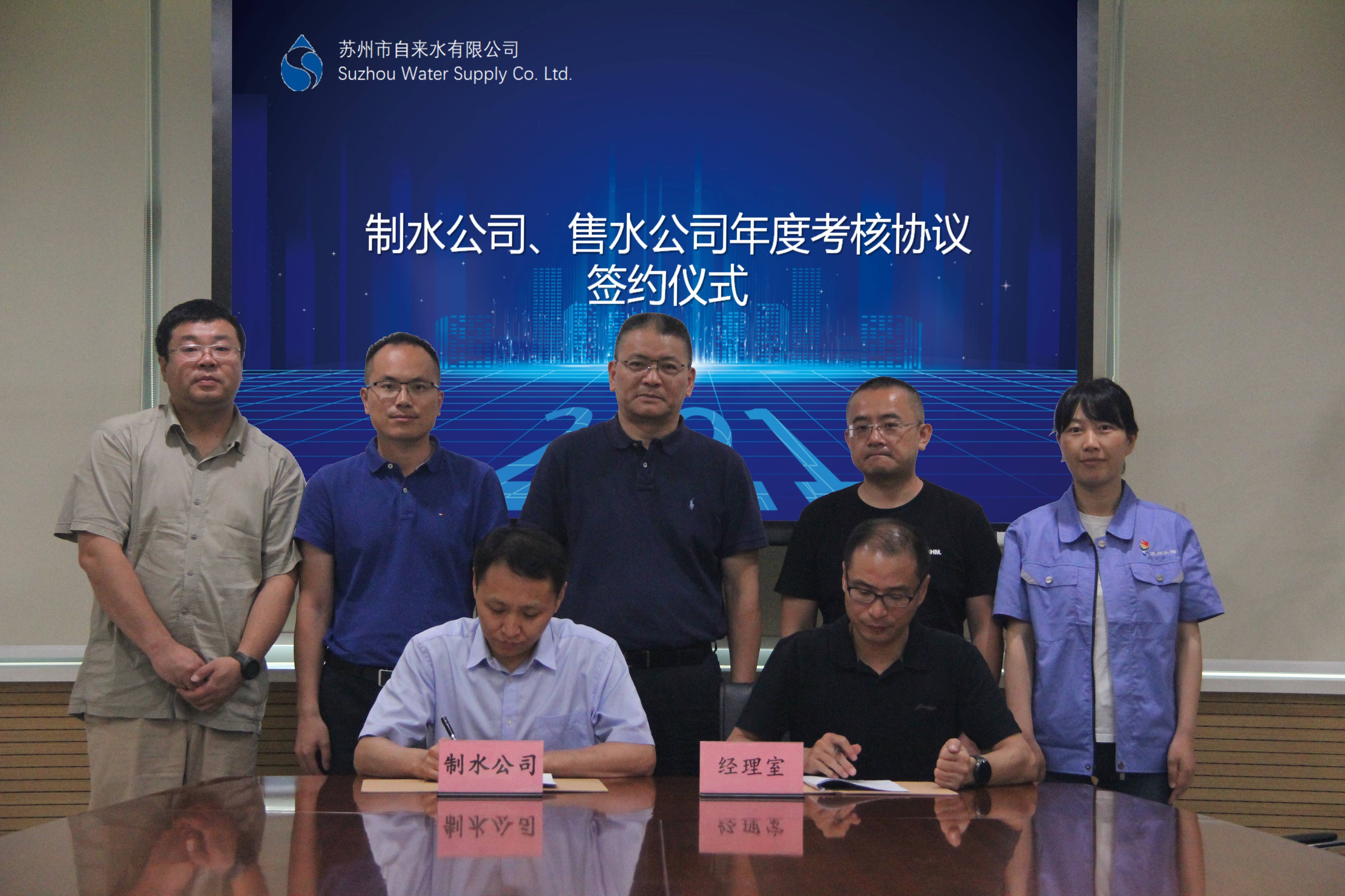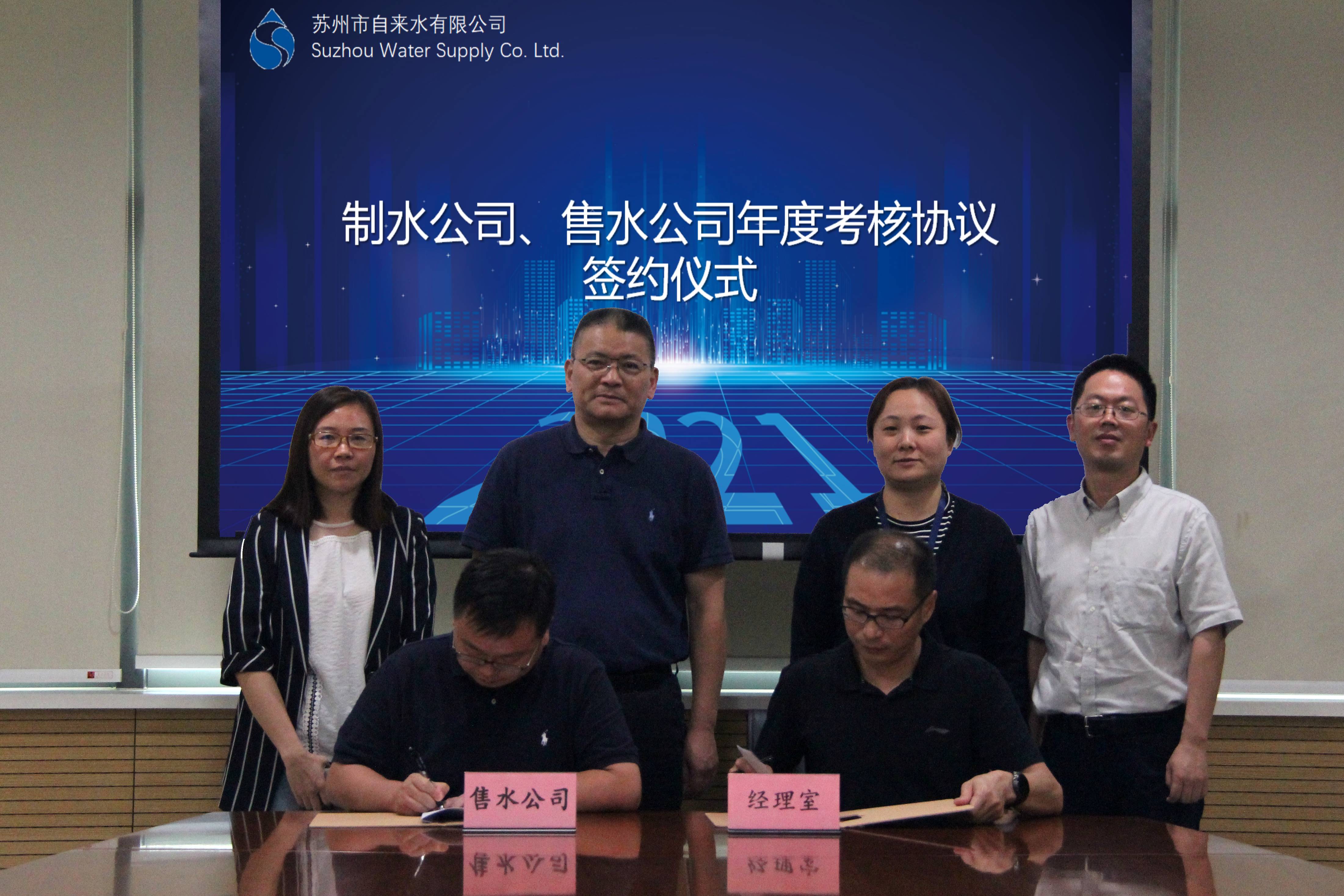 6月15日下午,市自來水公司經(jīng)理室與內(nèi)設制水公司、售水公司簽訂年度考核協(xié)議。公司黨委副書記、副董事長、總經(jīng)理錢勇代表公司經(jīng)理室,公司副總經(jīng)理蔣福春,總工程師紀永超分別代表制水公司、售水公司參與簽約,公司黨委書記、董事長孫林忠出席并見證整個簽約過程。
