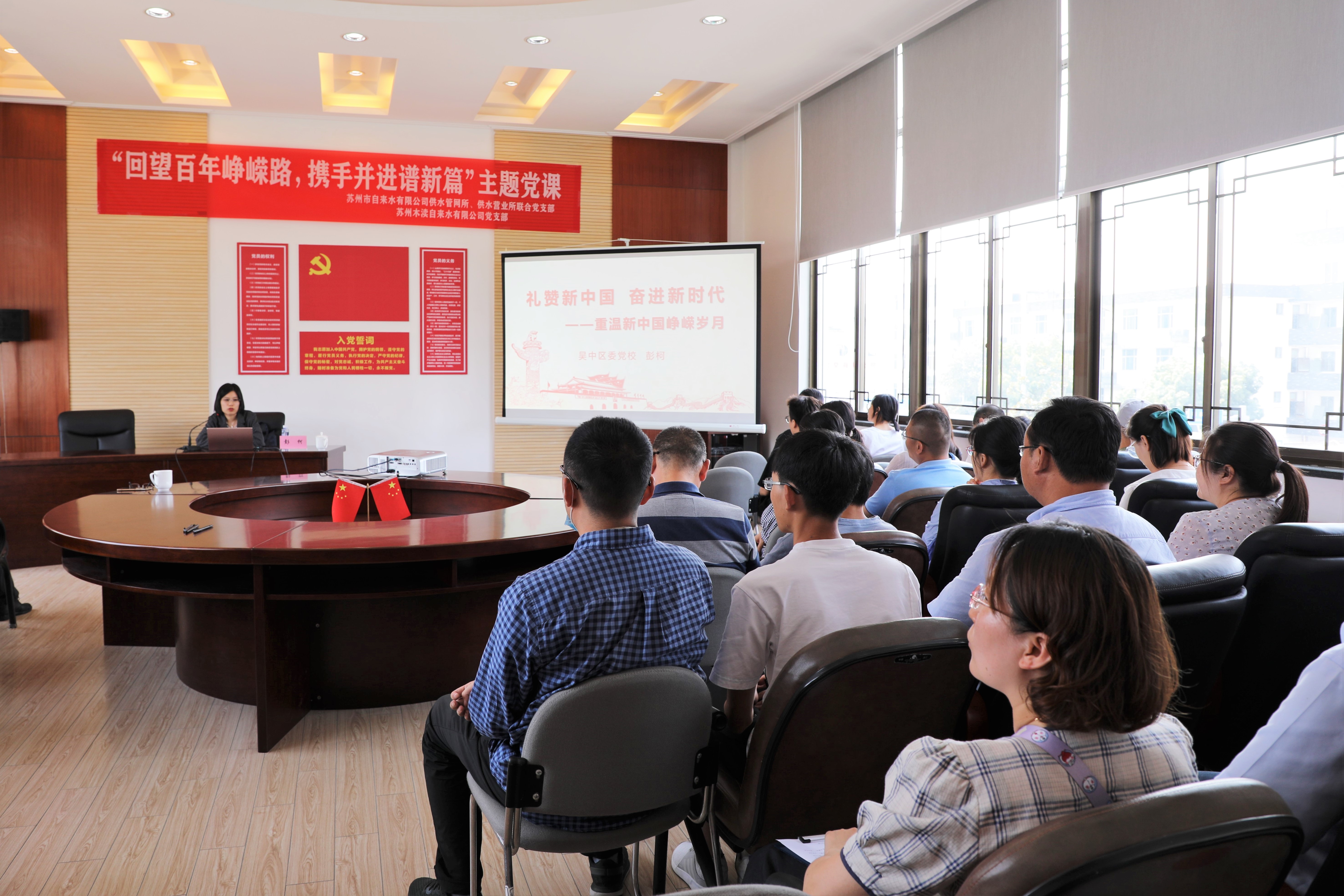 近日,蘇州市自來水有限公司供水管網(wǎng)所、供水營業(yè)所聯(lián)合黨支部和蘇州木瀆自來水有限公司黨支部聯(lián)合舉辦了以“回望百年崢嶸路,攜手并進譜新篇”為主題的黨史學(xué)習(xí)教育活動。本次活動邀請吳中區(qū)委黨校彭柯老師為大家授課。