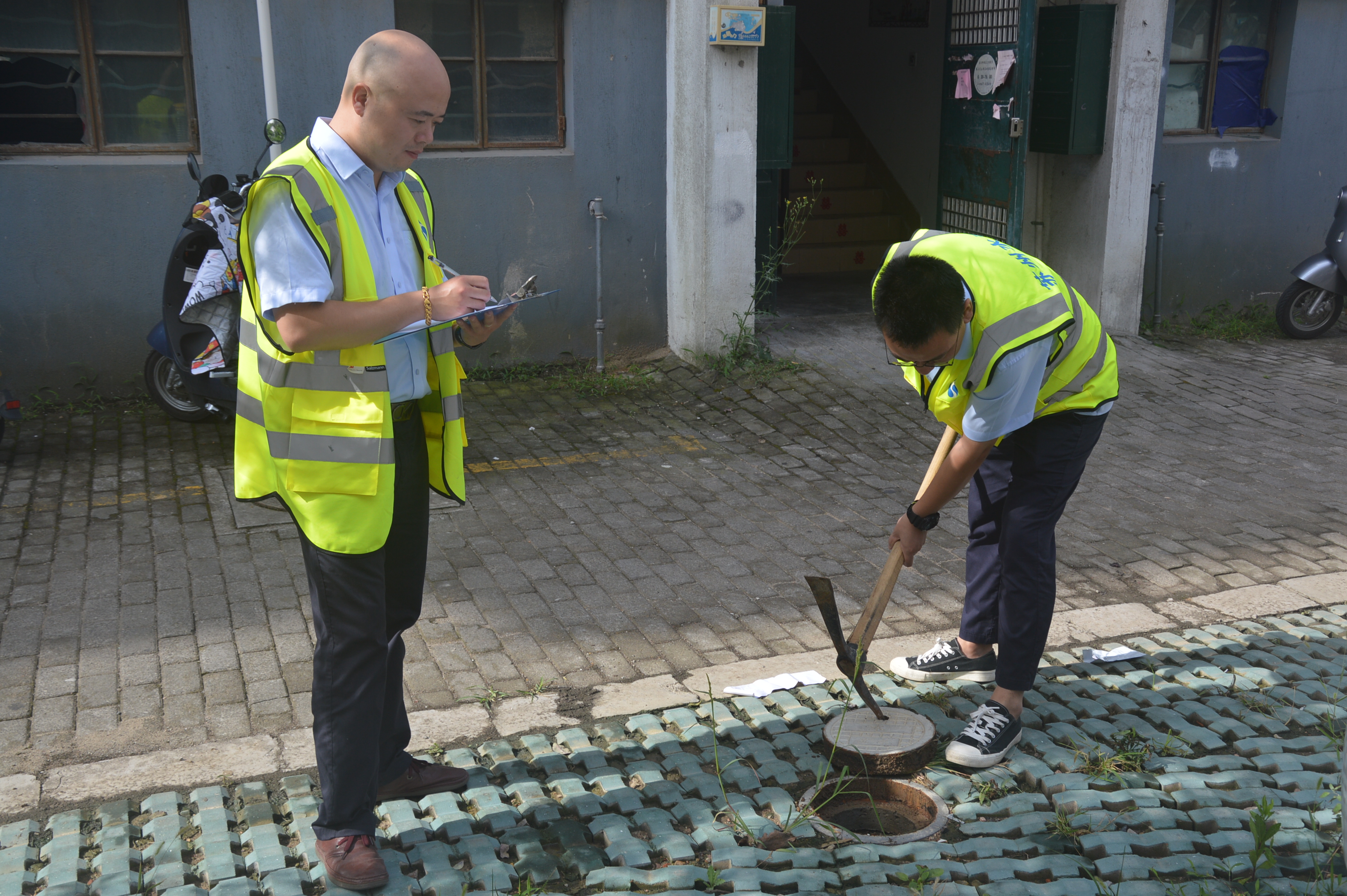 截止目前,普查小組已完成平江新城和金閶新城內(nèi)23個小區(qū)的管網(wǎng)普查工作。由于部分高層住宅地庫管資料有缺失、房屋結構各異、管線走向復雜,給普查工作造成了很多困難。老舊多層住宅主要普查外墻進水槽板的走向,以及樓道內(nèi)單立管和雙立管的布局等,需要普查人員逐幢、逐層仔細查勘、記錄。