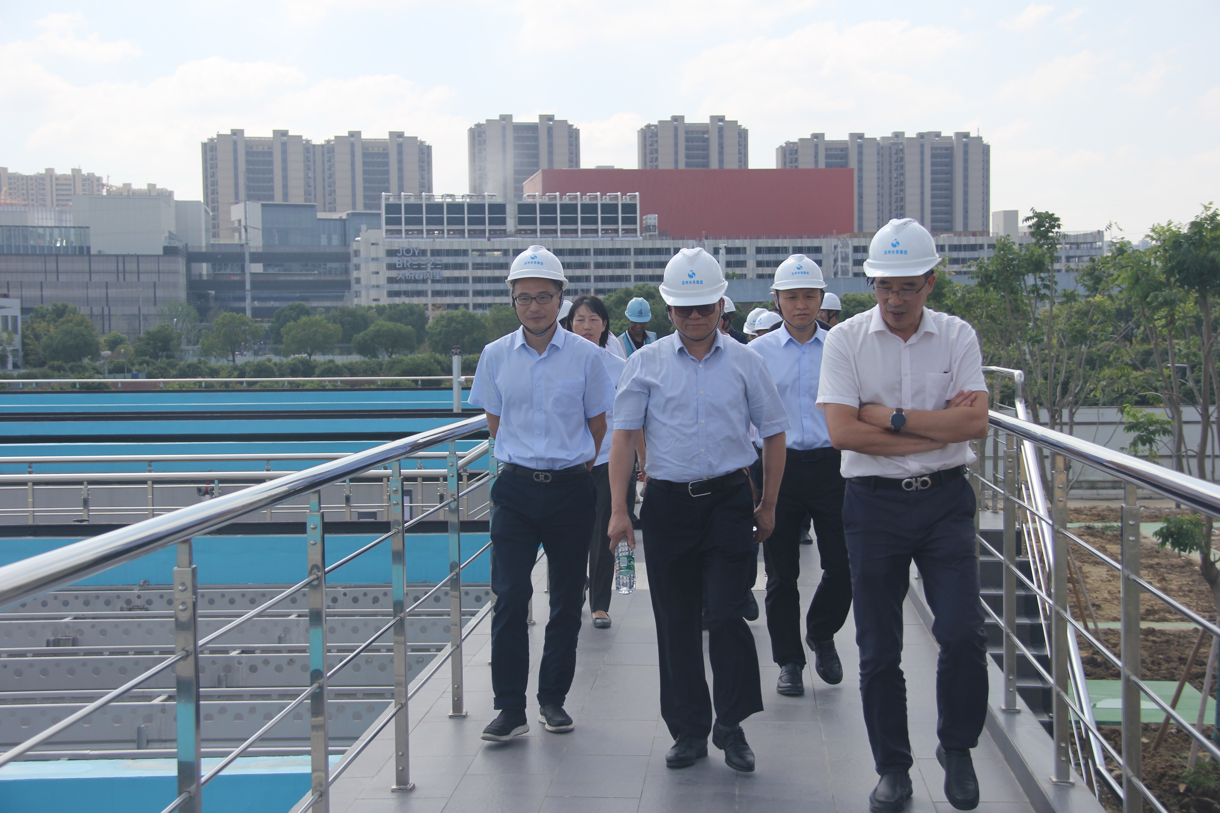 周云祥副局長(zhǎng)一行實(shí)地查看了相城水廠二期工程沉淀池等主要凈水構(gòu)筑物,全面聽(tīng)取了相城水廠二期工程常規(guī)工藝運(yùn)行及公司安全生產(chǎn)、節(jié)假日應(yīng)急隊(duì)伍保障等方面的情況匯報(bào),詳細(xì)了解了近期太湖、陽(yáng)澄湖原水水質(zhì)情況及相城水廠二期深度處理工藝建設(shè)情況。