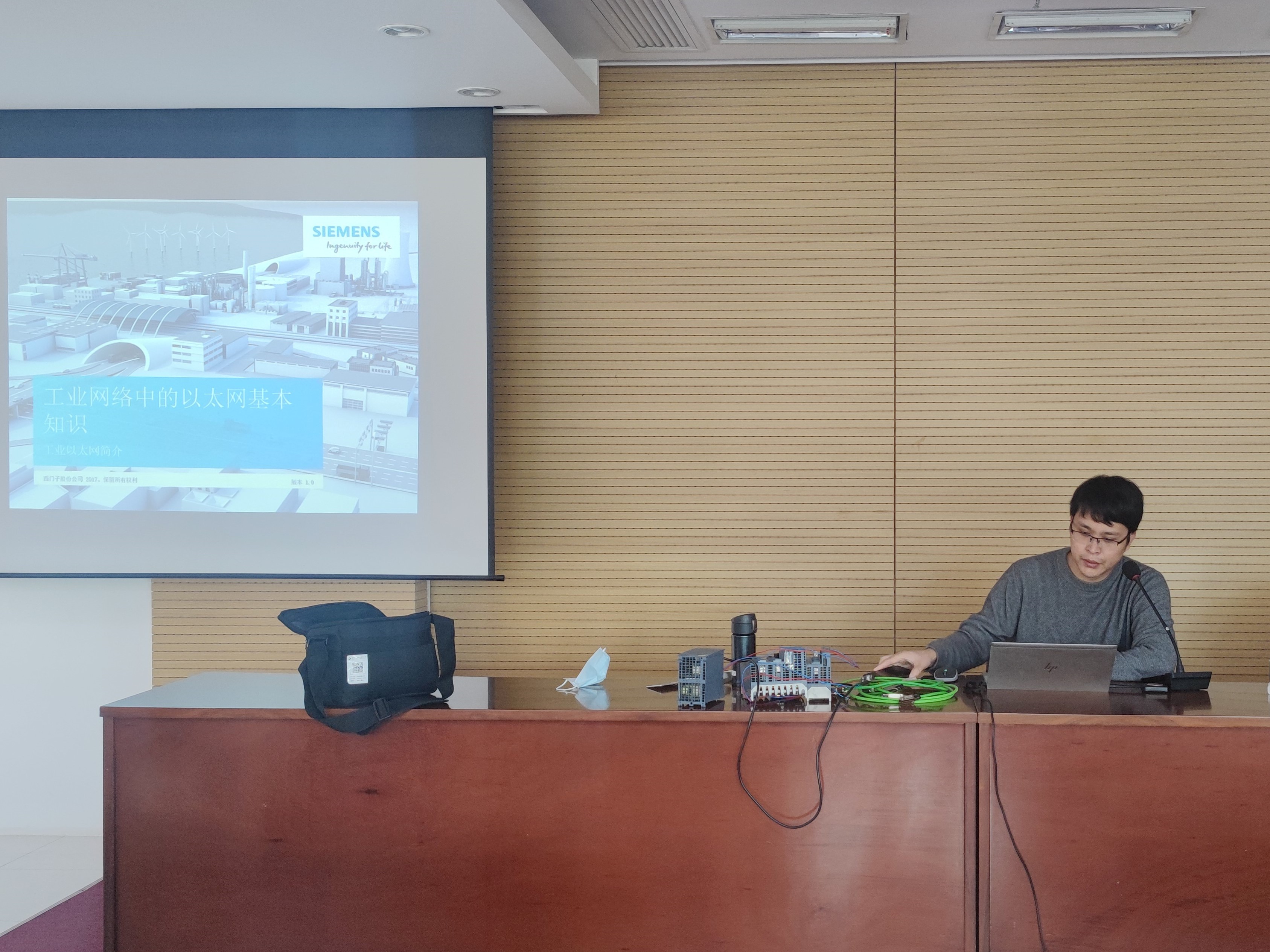 公司邀請(qǐng)到了西門子專家擔(dān)任本次培訓(xùn)的講師。培訓(xùn)中,講師以相城水廠二期項(xiàng)目為例,系統(tǒng)講解了目前公司自控網(wǎng)絡(luò)內(nèi)常見的網(wǎng)絡(luò)設(shè)備,解答了設(shè)備及自控系統(tǒng)的相關(guān)難題,并向職工分析了西門子不同網(wǎng)絡(luò)產(chǎn)品之間優(yōu)劣,對(duì)設(shè)備選型提供專業(yè)指導(dǎo)。在相城水廠中控室,講師演示了西門子交換機(jī)管理軟件的安裝及使用,為后續(xù)自控系統(tǒng)設(shè)備在線狀態(tài)監(jiān)測(cè)輔助分析系統(tǒng)的建設(shè)打好了基礎(chǔ)。