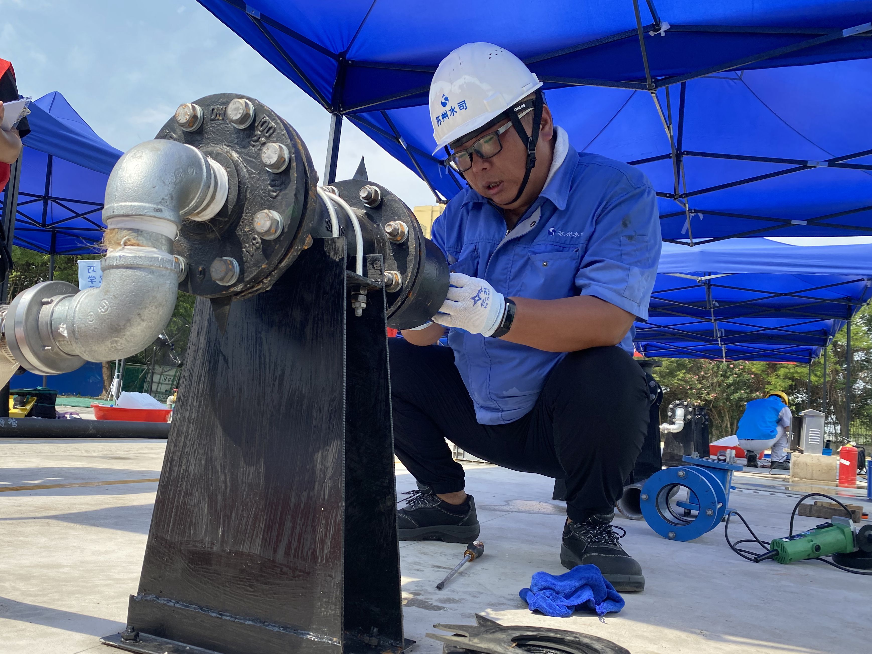 7月15日,2022年度全省百萬城鄉(xiāng)建設職工職業(yè)技能競賽水務行業(yè)供水管道工蘇州地區(qū)選拔賽在蘇州市自來水有限公司售水分公司順利舉行。本次開幕式由蘇州市供排水管理處劉錦星處長主持,蘇州市水務局工會聯(lián)合會主席陳鵲輝、蘇州市水務局水資源和供水處處長巫華等多位領導蒞臨指導,蘇州水務集團黨委委員、紀委書記、工會聯(lián)合會主席吳文勝,蘇州市自來水有限公司黨委班子到會出席。