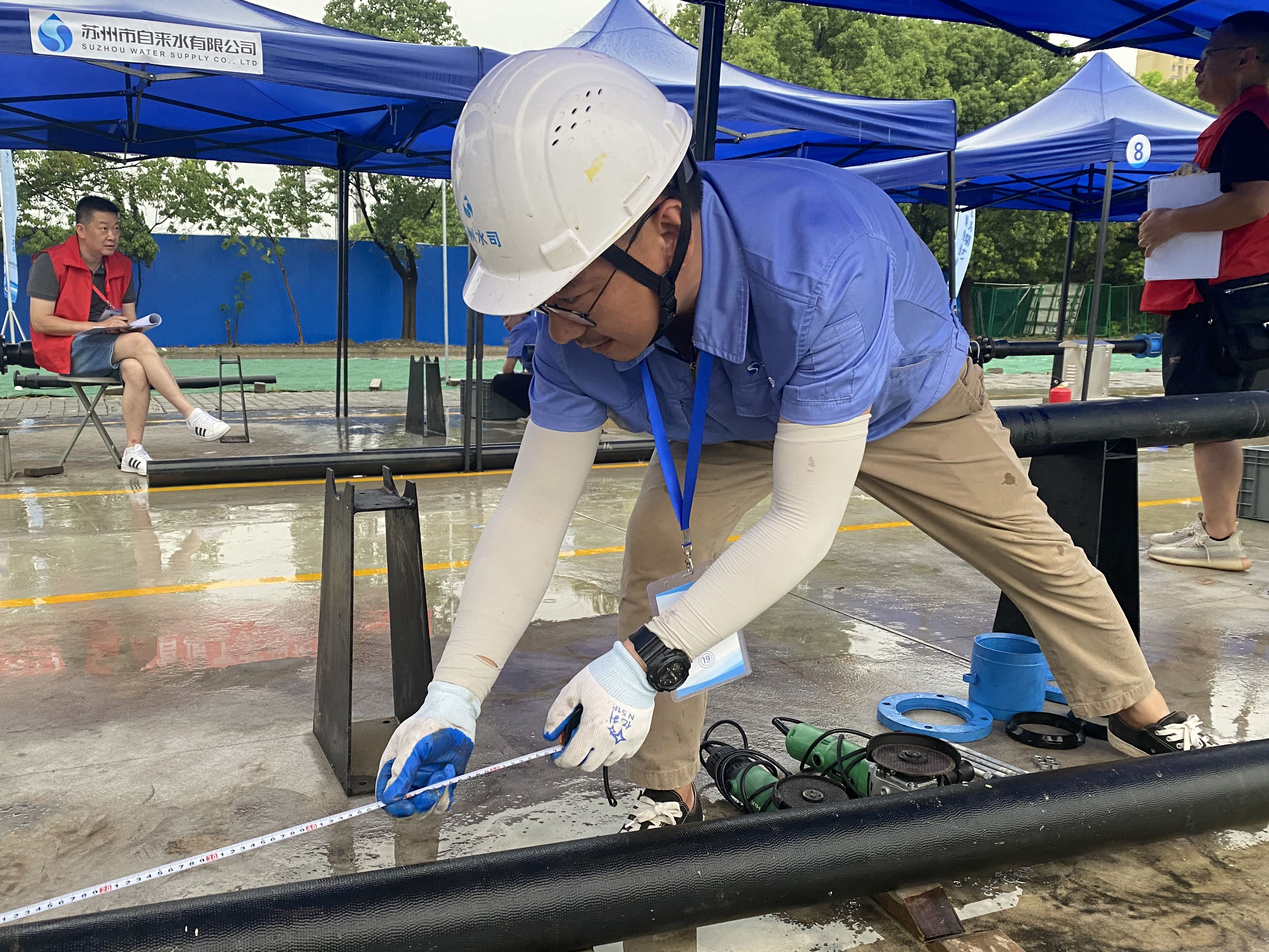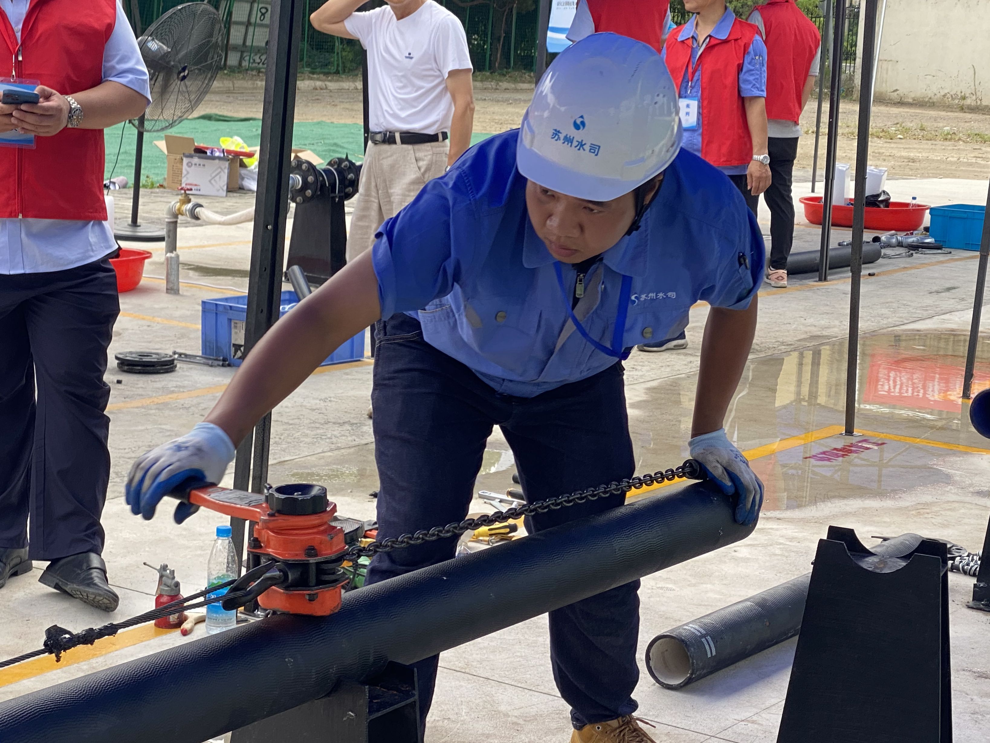 本次大賽分為理論考試和技能操作兩部分,10家供水單位,22名技能人才同臺競技。比賽中,各位選手認真答題,仔細審圖,小心切割,快速接攏,順利通過通水試驗,大家賽絕活、秀風采。最終將選出5名優(yōu)勝者代表蘇州水務行業(yè)參與2022年度全省百萬城鄉(xiāng)建設職工職業(yè)技能競賽。