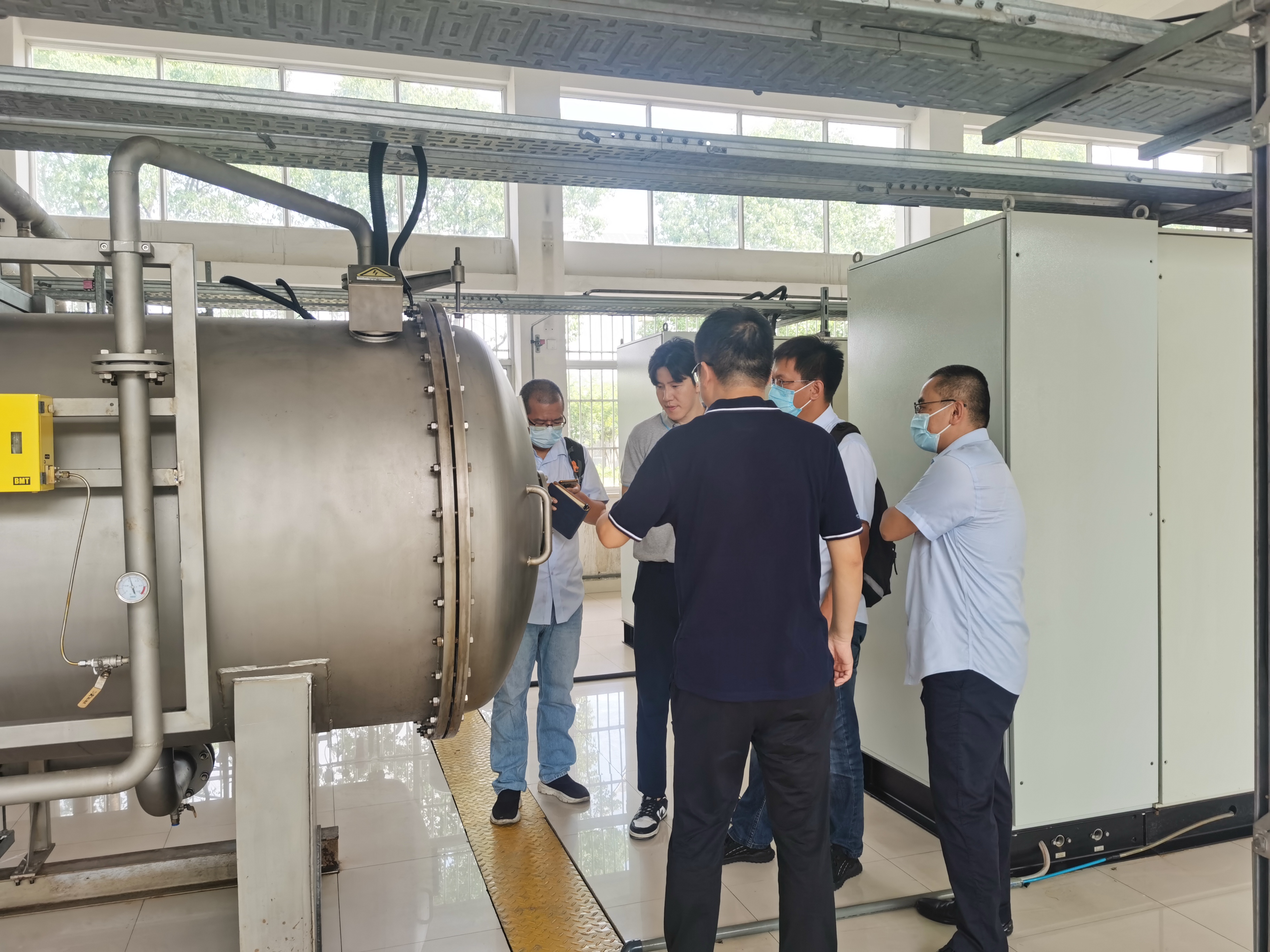 調(diào)研人員現(xiàn)場(chǎng)參觀了青島國(guó)林臭氧發(fā)生器的運(yùn)行情況,與昆山水司工作人員主要就設(shè)備的運(yùn)行數(shù)據(jù)、故障維修保養(yǎng)、疫情期間發(fā)生器備件的供貨時(shí)間及其技術(shù)支持等情況進(jìn)行交流。雙方在互學(xué)互鑒中找差距、補(bǔ)短板、強(qiáng)弱項(xiàng),探求工作新思路,促進(jìn)共同進(jìn)步。