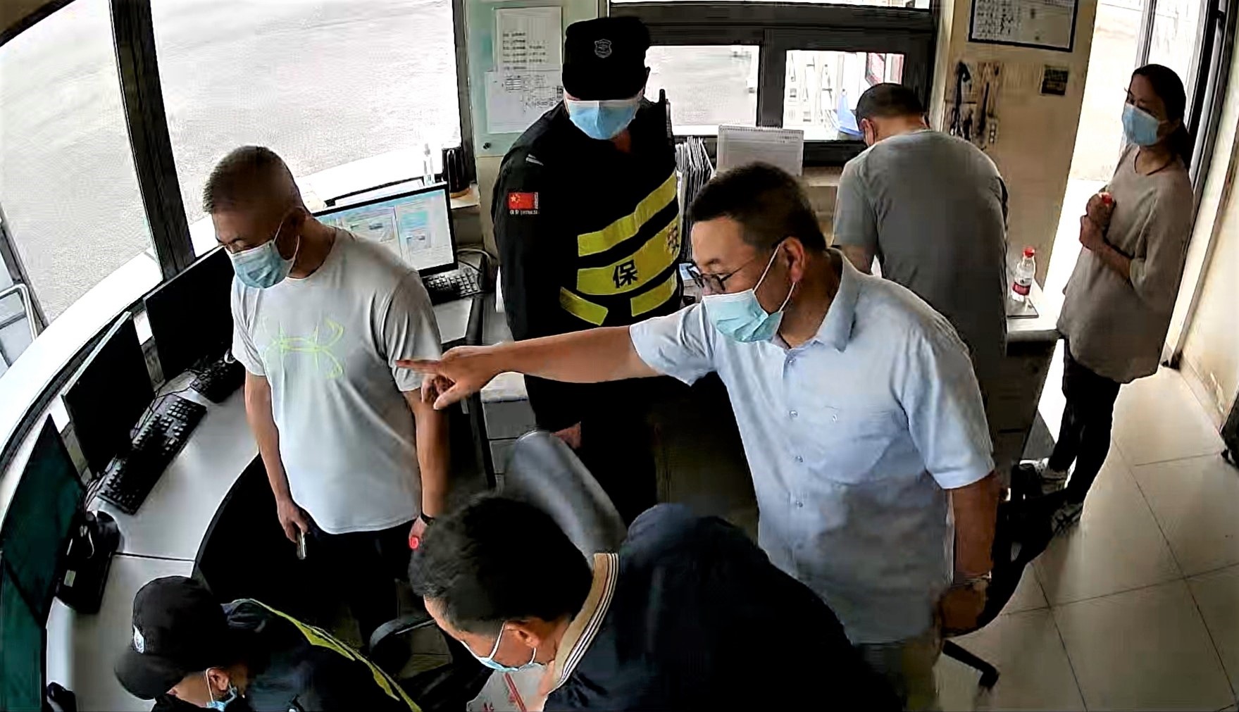 檢查組現(xiàn)場(chǎng)查看了東門(mén)保安室的技防設(shè)施運(yùn)行情況,詳細(xì)詢問(wèn)了水廠安保力量的配備,現(xiàn)場(chǎng)檢查保安人員值勤巡邏打點(diǎn)記錄、防暴器械配備、一鍵報(bào)警系統(tǒng)運(yùn)行、廠區(qū)周界報(bào)警、人證識(shí)別訪客系統(tǒng)和防無(wú)人機(jī)入侵系統(tǒng)等使用情況,檢查覆蓋人防、物防和技防三方面。隨后,檢查組還查閱了治安反恐臺(tái)賬,并據(jù)此調(diào)閱廠區(qū)治安內(nèi)保視頻監(jiān)控,實(shí)地測(cè)試周界聯(lián)動(dòng)報(bào)警防區(qū),詳細(xì)了解了水廠治安防范措施的落實(shí)情況及安防硬件建設(shè)。