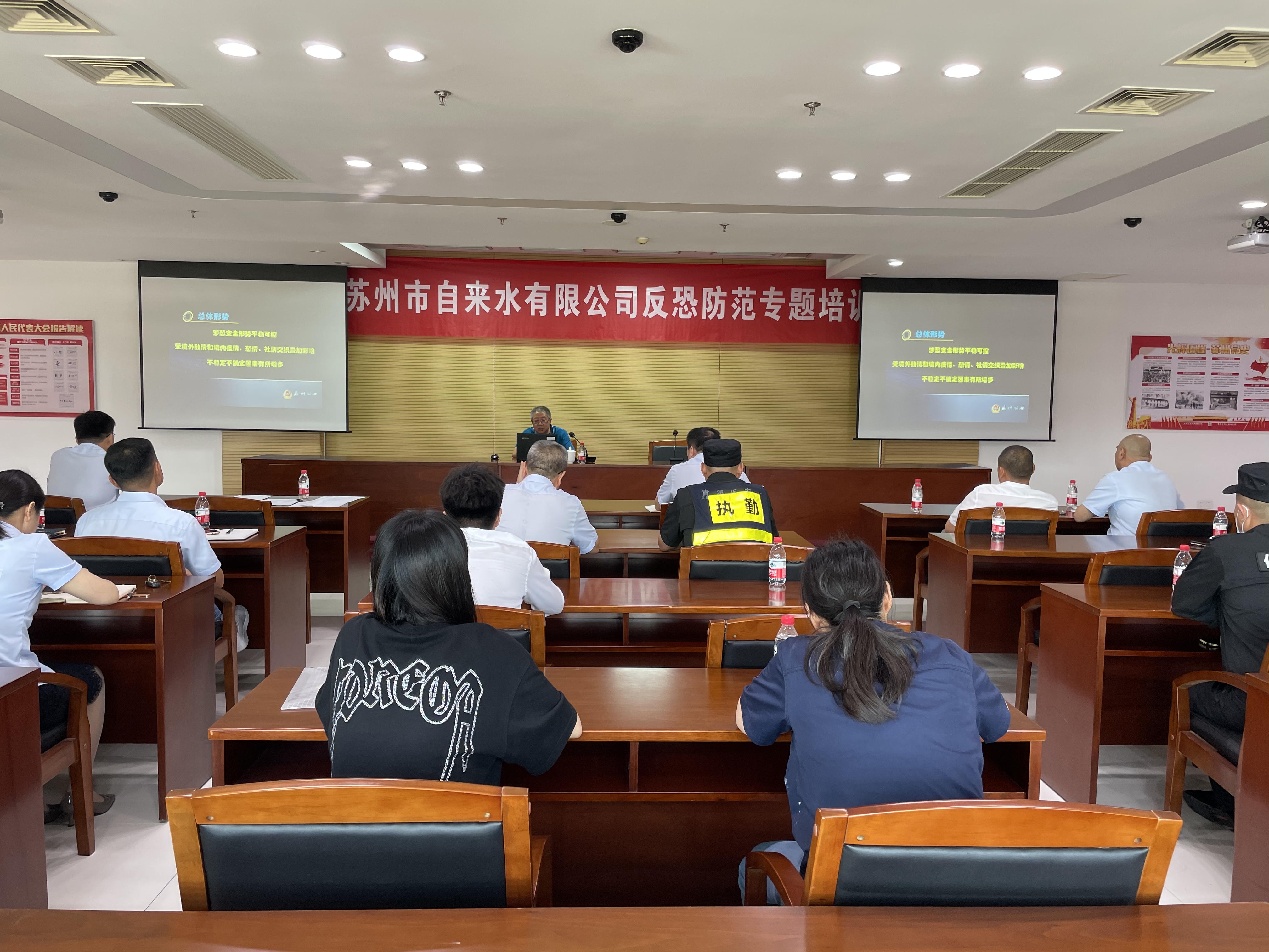 公司先后邀請市公安局反恐辦、市公安局內(nèi)保支隊(duì)開展反恐防范和治安內(nèi)保培訓(xùn)教育活動,提高公司安保相關(guān)負(fù)責(zé)人員的業(yè)務(wù)能力。制水分公司聯(lián)合滸關(guān)經(jīng)濟(jì)技術(shù)開發(fā)區(qū)派出所、保安公司,開展了“紅藍(lán)對抗”實(shí)戰(zhàn)演練。售水分公司在供水營業(yè)大廳組織開展了反恐防暴演練。同時各單位組織保安進(jìn)行了業(yè)務(wù)能力筆試、防爆器械實(shí)操考核。通過培訓(xùn)和演練,不斷增強(qiáng)員工和保安面對突發(fā)事件的應(yīng)急處置能力,積累了治安反恐事件處置實(shí)操經(jīng)驗(yàn),為公司治安反恐維穩(wěn)奠定堅(jiān)實(shí)基礎(chǔ)。