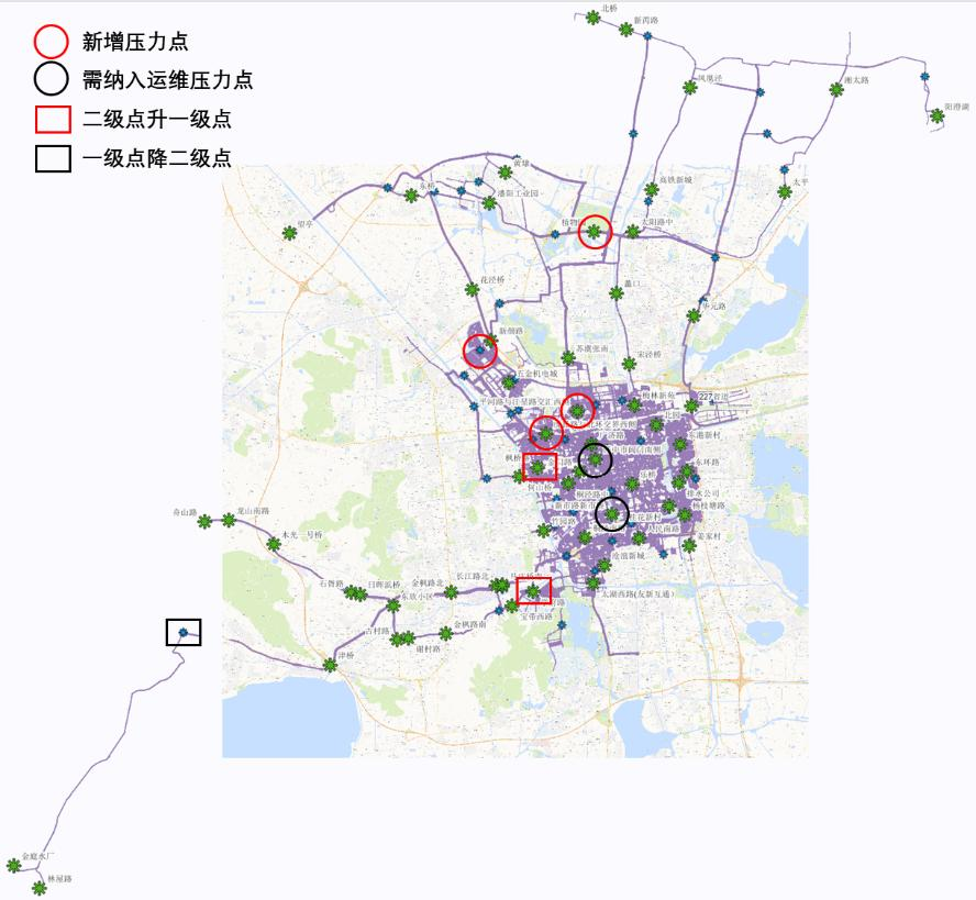 近年來(lái),隨著水司供水面積逐步擴(kuò)大,居民人口不斷增加,城市功能區(qū)域也發(fā)生了巨大變化。為保障用戶用水安全,使管網(wǎng)監(jiān)測(cè)點(diǎn)分布更加均勻、合理、覆蓋范圍廣,水司總工辦聯(lián)合運(yùn)控中心和制水分公司通過(guò)討論、研究和實(shí)地考察,編制了《蘇州市自來(lái)水有限公司管網(wǎng)在線監(jiān)測(cè)點(diǎn)優(yōu)化及布置方案》,選擇合適位置作為管網(wǎng)監(jiān)測(cè)點(diǎn),使調(diào)整后的壓力、水質(zhì)采樣更加具有代表性,實(shí)現(xiàn)全市密集區(qū)及管網(wǎng)末梢的水質(zhì)監(jiān)測(cè)“全覆蓋”。