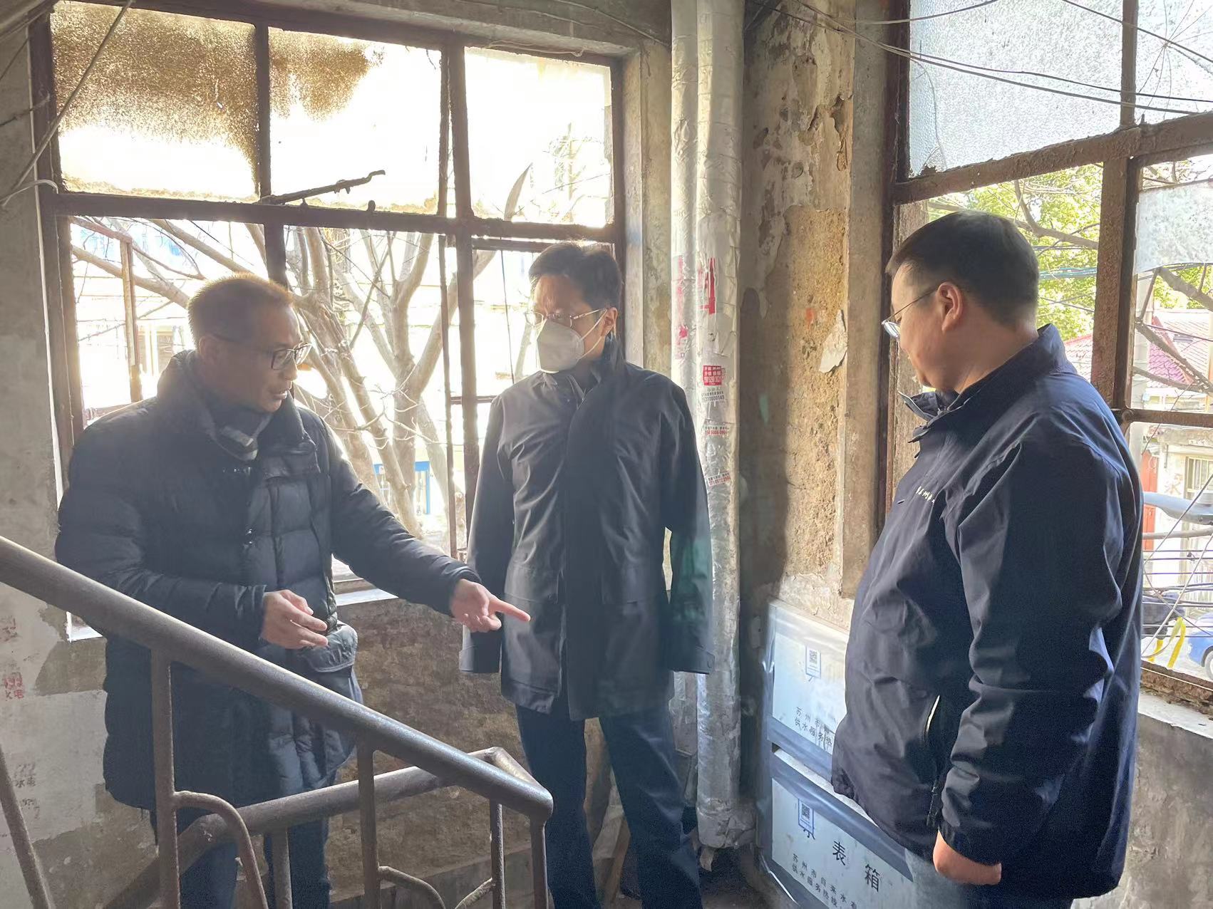 1月25日,保護(hù)區(qū)管委會(huì)副主任、姑蘇區(qū)政府副區(qū)長(zhǎng)葛昕,姑蘇區(qū)住建委副主任陸啟鑫來(lái)到冰廠街、朱家莊社區(qū)等供水薄弱區(qū)域,檢查市自來(lái)水公司抗寒保供各項(xiàng)工作落實(shí)情況。蘇州水務(wù)集團(tuán)黨委書(shū)記、董事長(zhǎng)徐國(guó)忠,市自來(lái)水公司黨委書(shū)記、董事長(zhǎng)孫林忠,黨委副書(shū)記、副董事長(zhǎng)、總經(jīng)理錢勇,黨委委員、紀(jì)委書(shū)記、工會(huì)主席夏亞軍,黨委委員、總工程師紀(jì)永超隨行陪同。