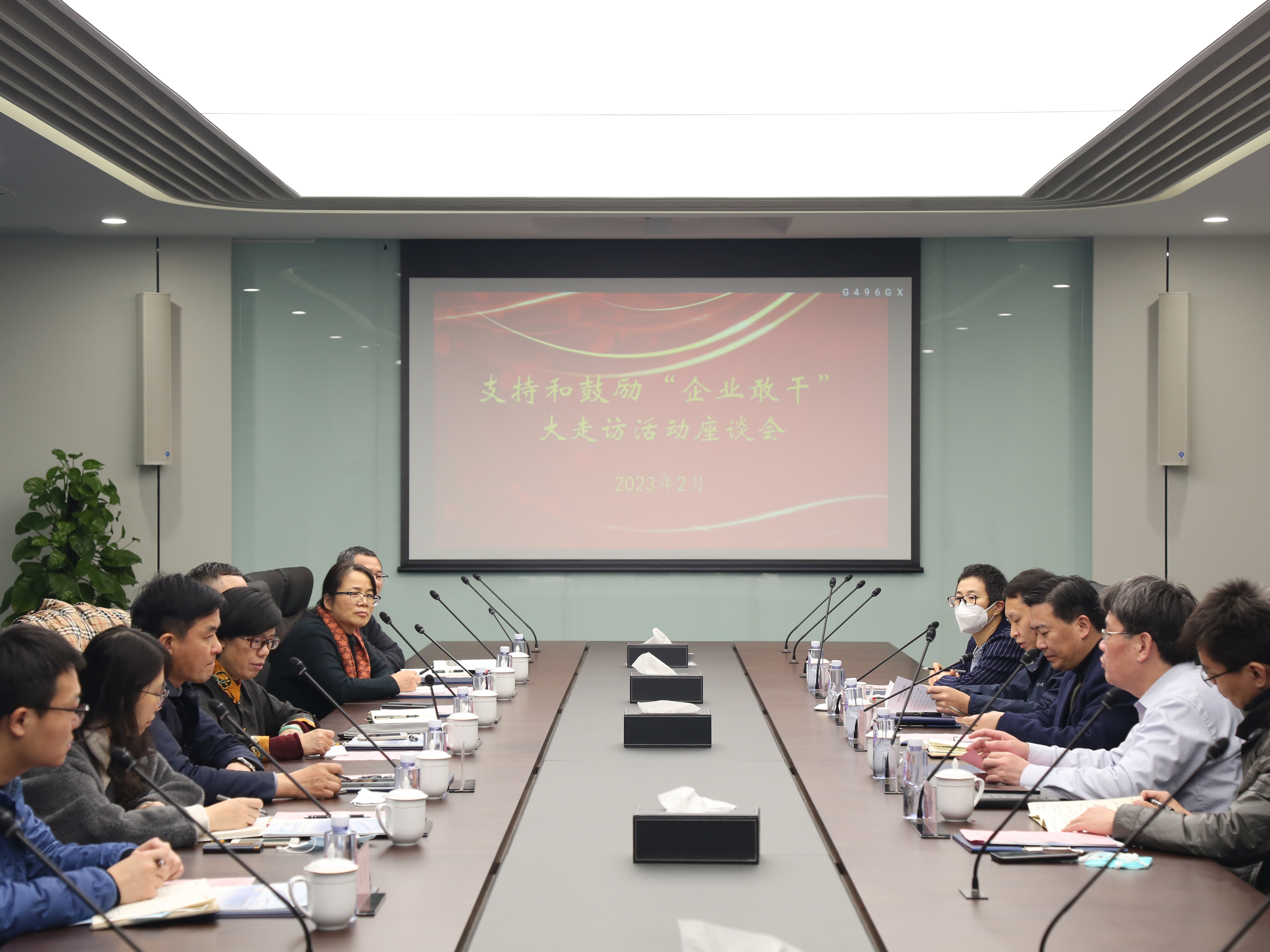 陸主任一行首先認(rèn)真聽(tīng)取了兩家公司的簡(jiǎn)要匯報(bào),了解了供水生產(chǎn)服務(wù)、水務(wù)數(shù)字化轉(zhuǎn)型工作開(kāi)展以及區(qū)域供水保障等情況,通過(guò)聽(tīng)心聲、話發(fā)展,助力協(xié)調(diào)解決發(fā)展難題、樹(shù)立發(fā)展信心,全力支持和鼓勵(lì)“企業(yè)敢干”。