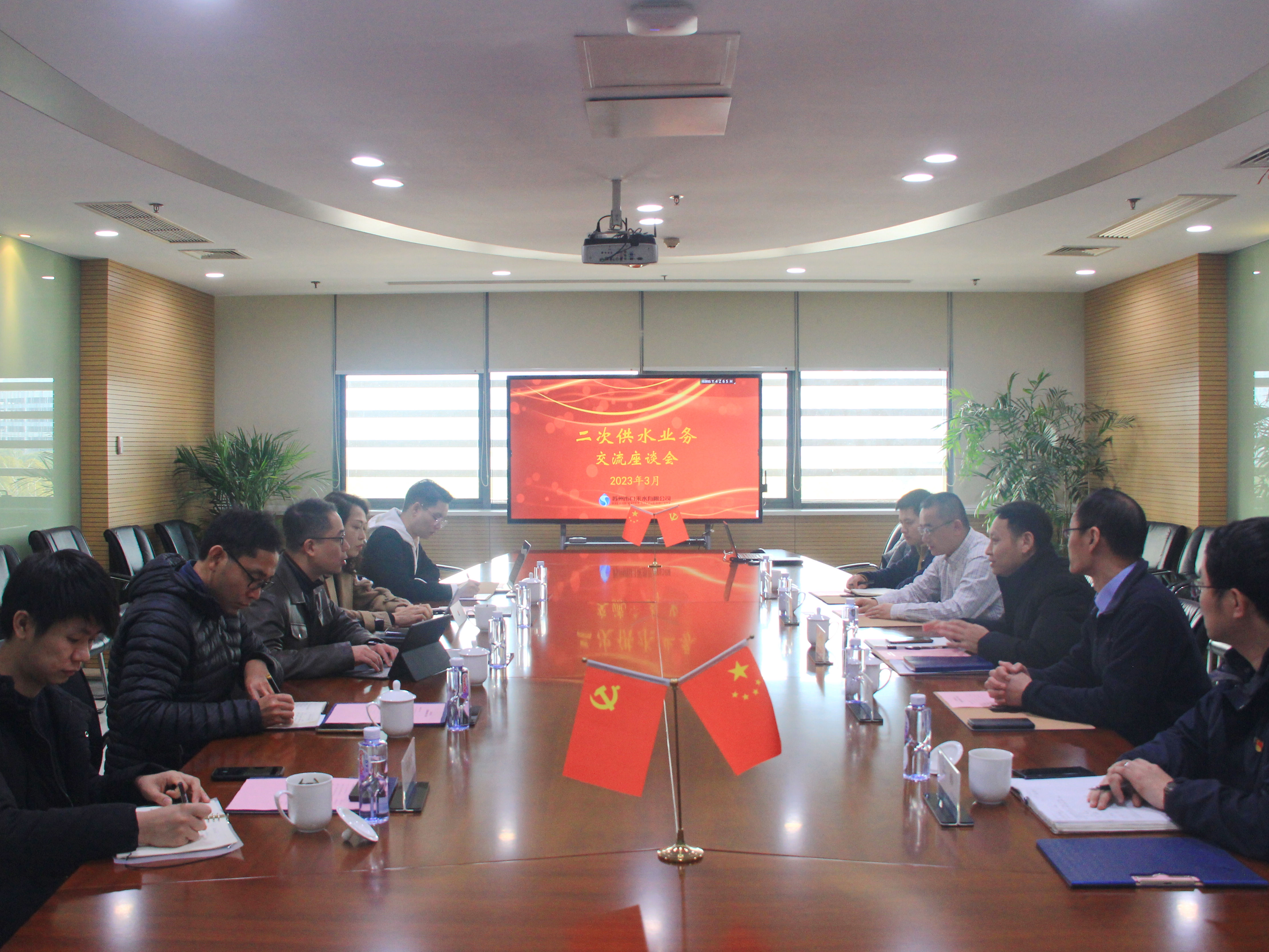 隨后,雙方進行座談,就蘇州市二次供水相關(guān)政策、二供泵房舊改契機、建設(shè)標準、實施過程、遠程數(shù)據(jù)監(jiān)控、日常維護要求及工單維護等進行了深入的探討和交流。雙方還分享了各自在水廠調(diào)度、綜合管理、安全保障、突發(fā)事件應(yīng)急處置等方面的理念與心得,佛山水務(wù)一行對公司的相關(guān)管理舉措表示充分肯定和認可。