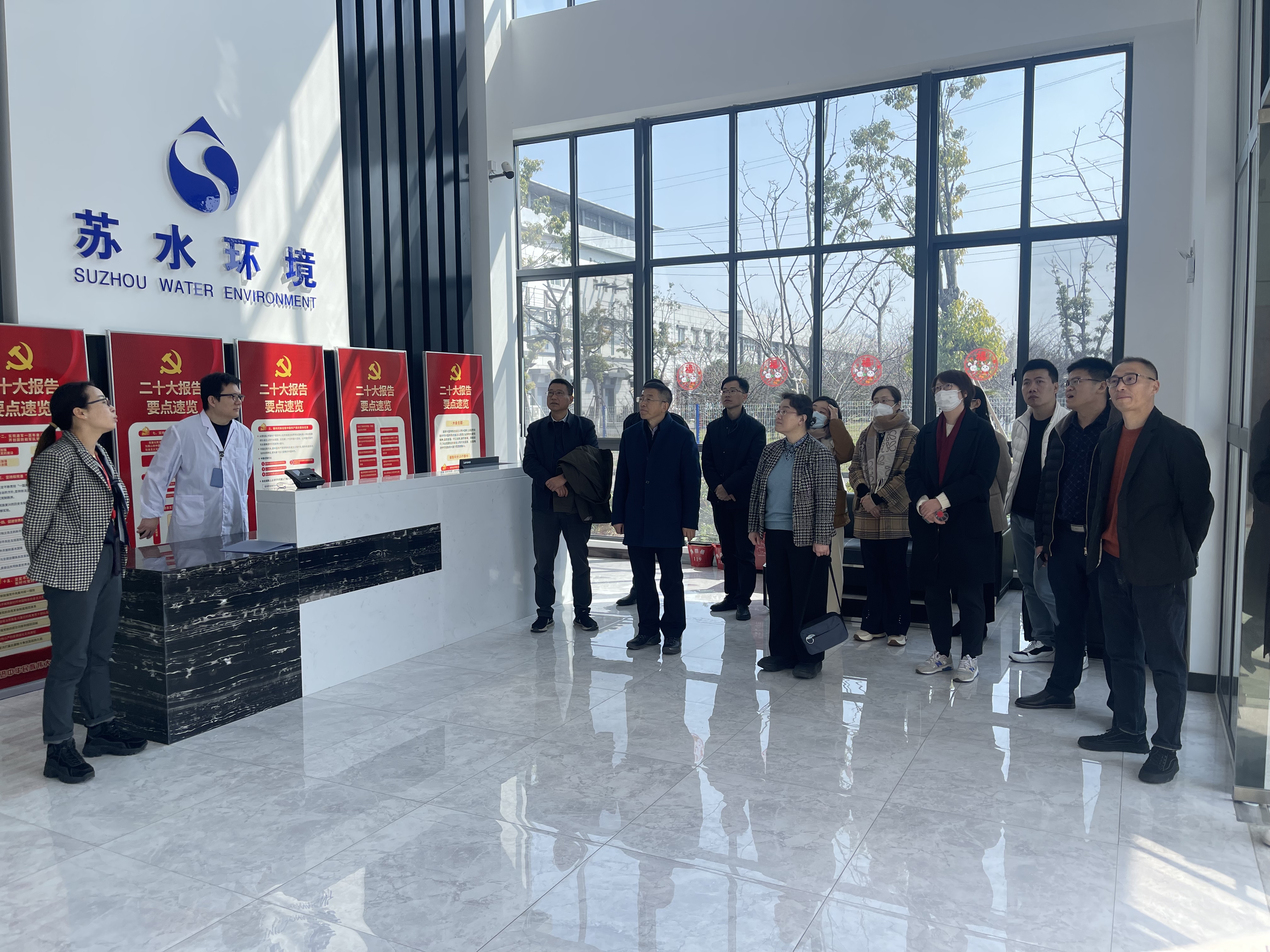 緊接著前往蘇水環(huán)境監(jiān)測公司,實地參觀了檢測實驗室,了解相關(guān)人員與硬件設(shè)施。