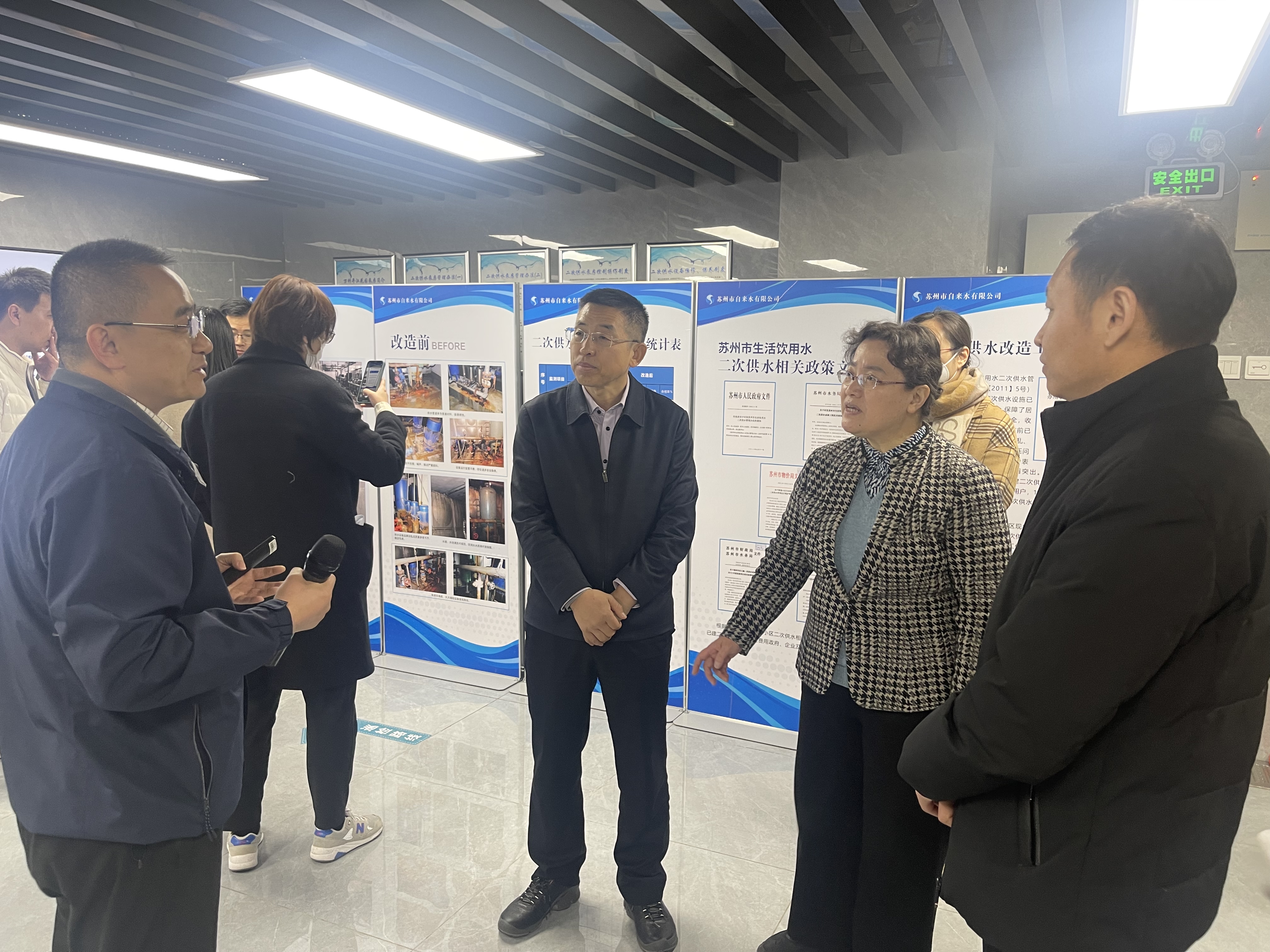 3月2日,由住建部法規(guī)司副司長程國順帶隊,住建部法規(guī)司、城市建設(shè)司一行赴市自來水公司參觀調(diào)研,蘇州市水務(wù)局一級調(diào)研員夏堅,蘇州市供排水管理處處長盛銘軍,水務(wù)集團(tuán)黨委委員、副總經(jīng)理周建國,市自來水公司黨委副書記、副董事長、總經(jīng)理錢勇,黨委委員、副總經(jīng)理蔣福春隨行陪同。
