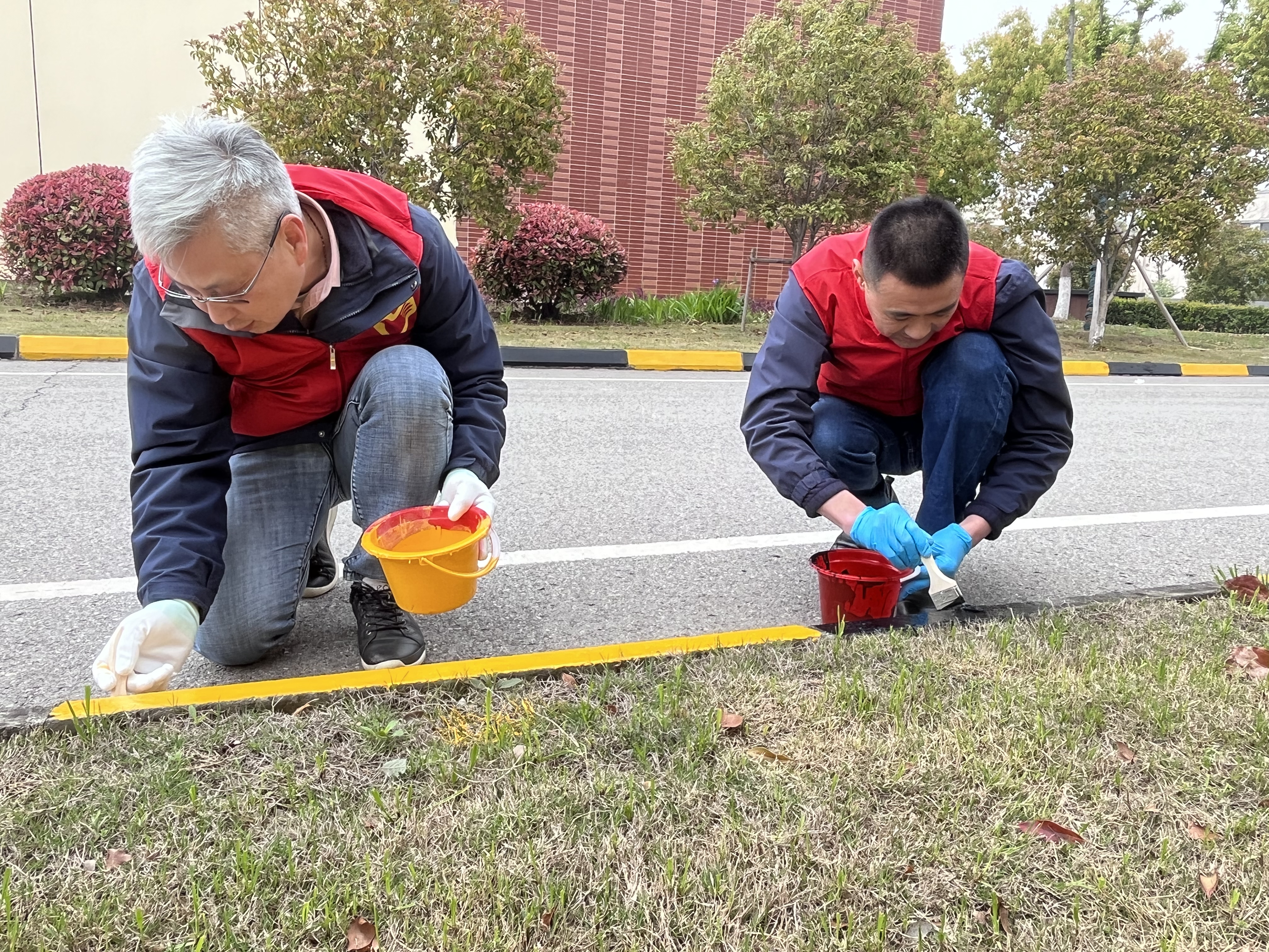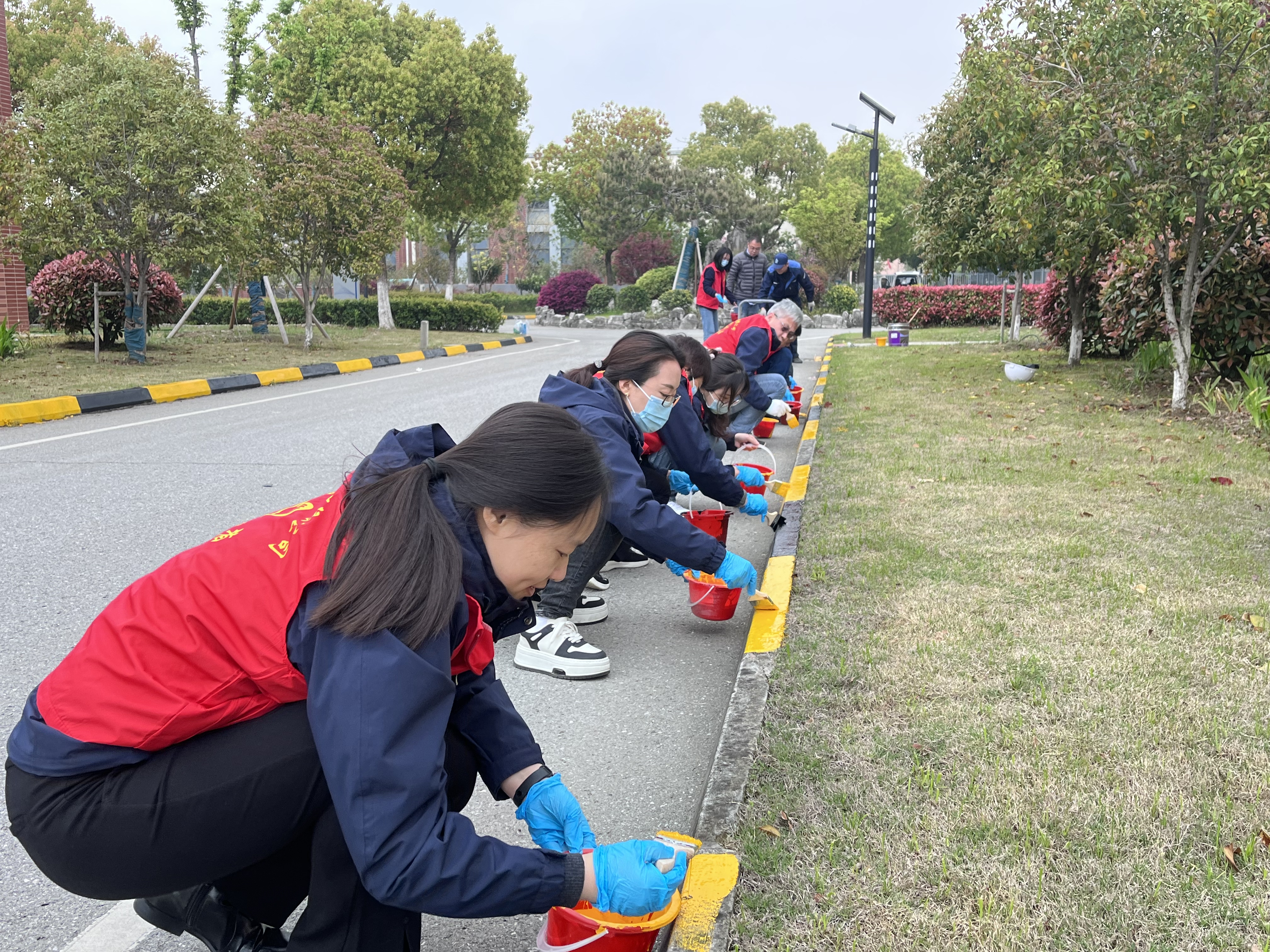 由于長時間的風(fēng)吹日曬,白洋灣水廠中心道路兩邊側(cè)石油漆部分缺失,制水分公司黨支部樹牢安全發(fā)展理念,圍繞安全生產(chǎn)開展志愿活動,積極組織黨員行動起來。大家擼起袖子,一字排開,采用黃黑相間碰漆粉刷對側(cè)石進(jìn)行標(biāo)識,為水廠路邊側(cè)石穿起醒目的“外衣”。