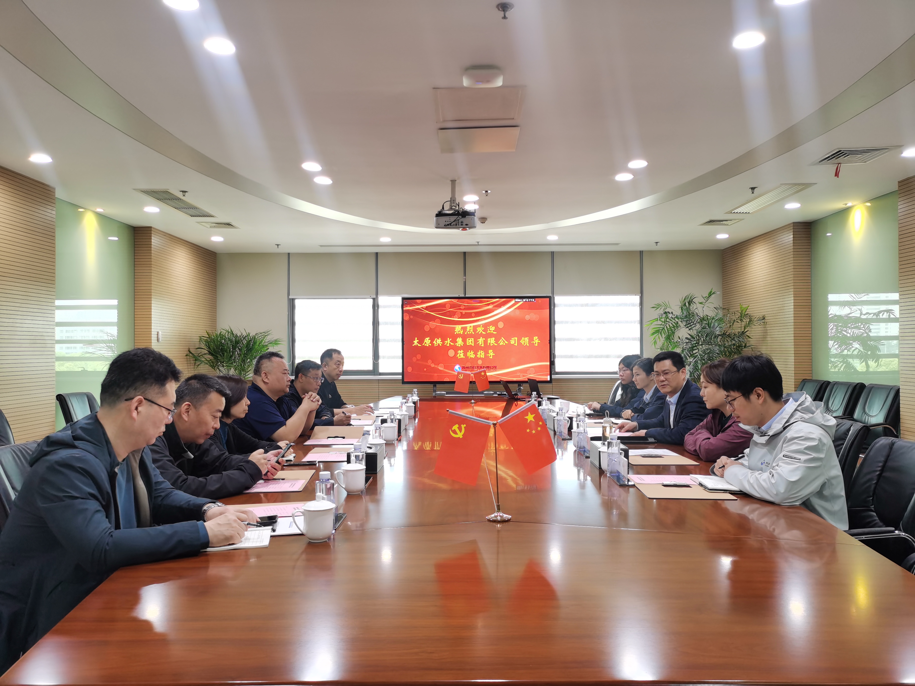 4月14日上午,太原供水集團有限公司一行赴蘇州市自來水有限公司參觀交流。蘇州市自來水有限公司黨委委員、紀(jì)委書記、工會主席夏亞軍及相關(guān)人員參加座談交流。