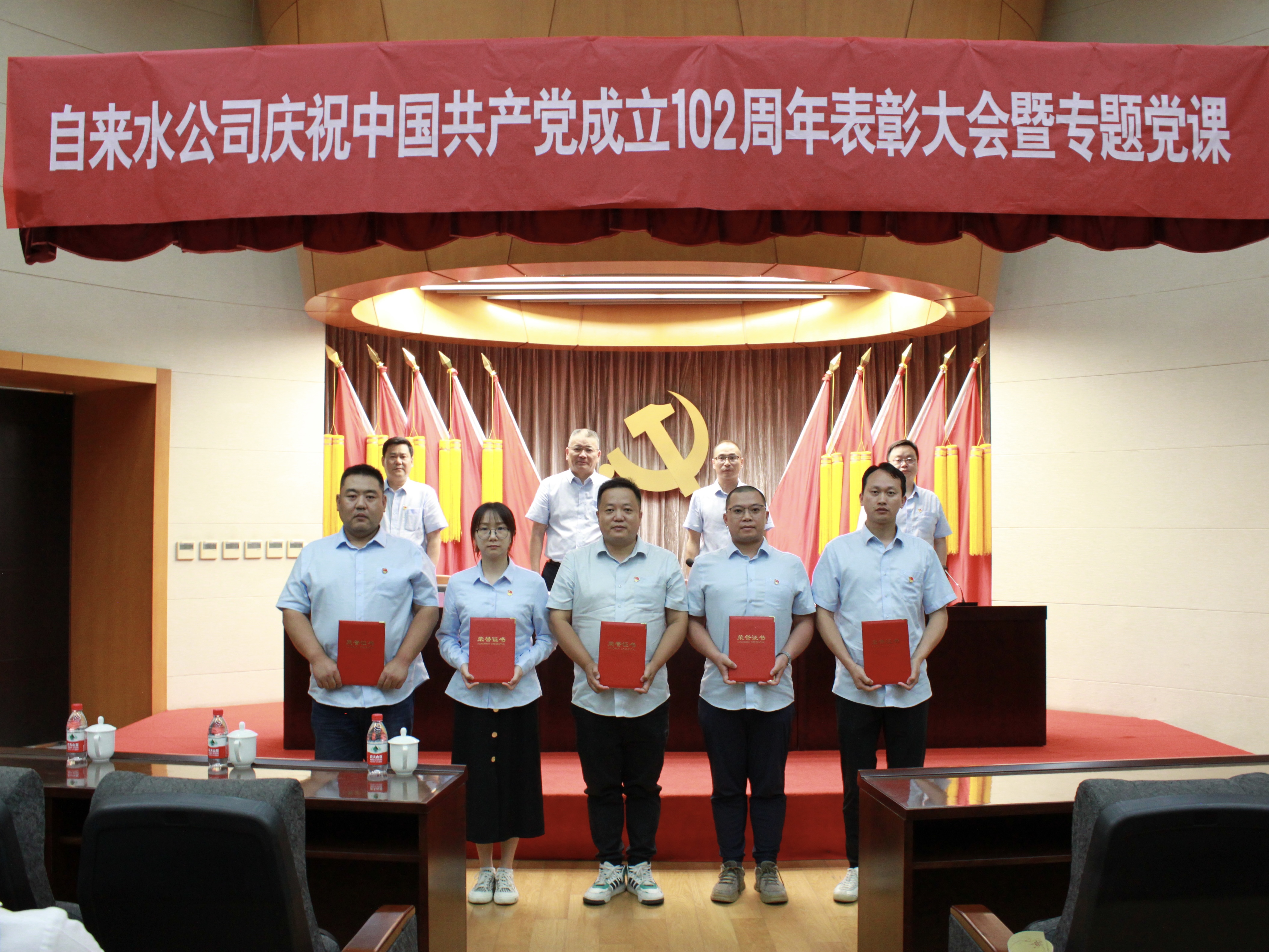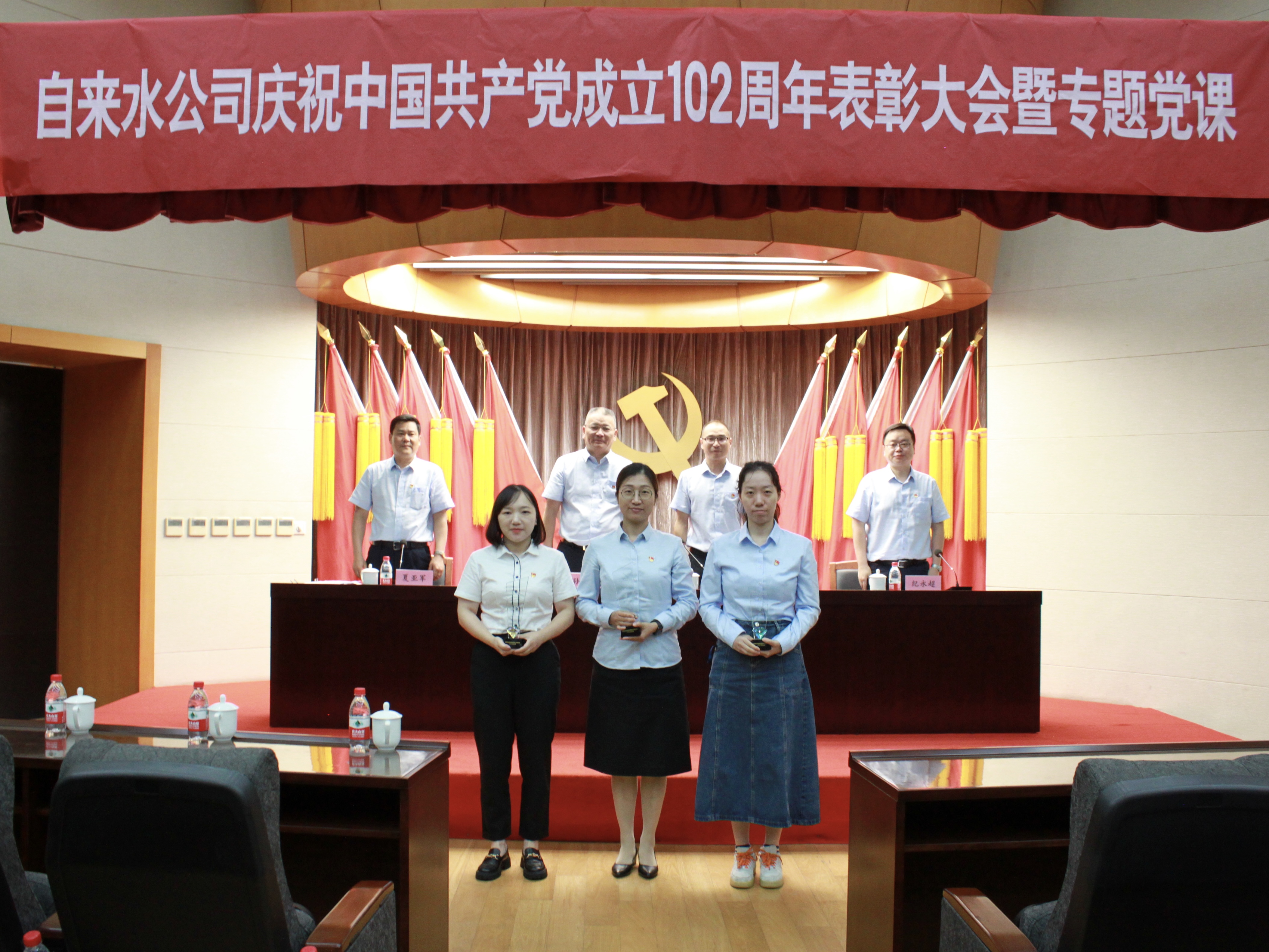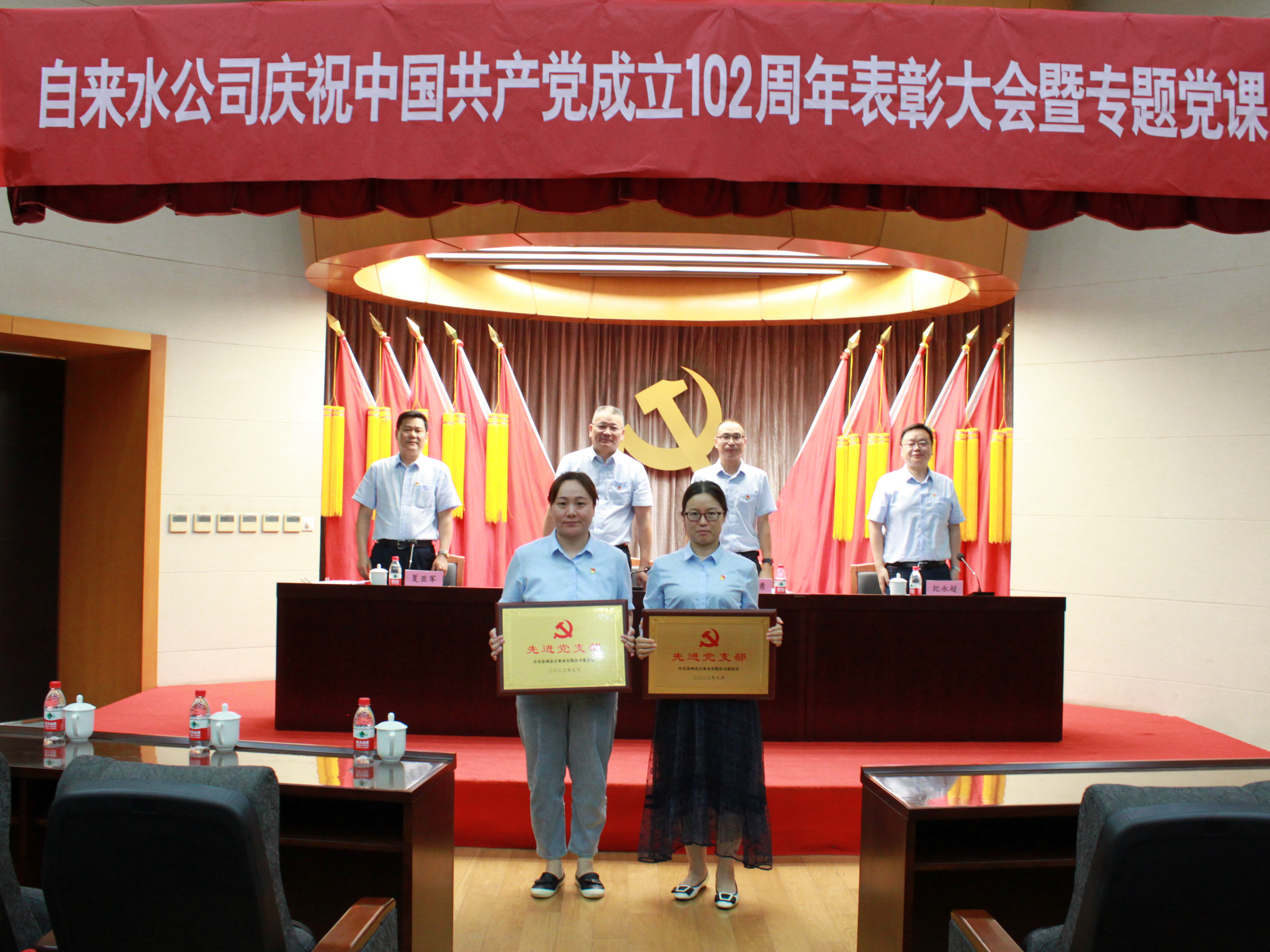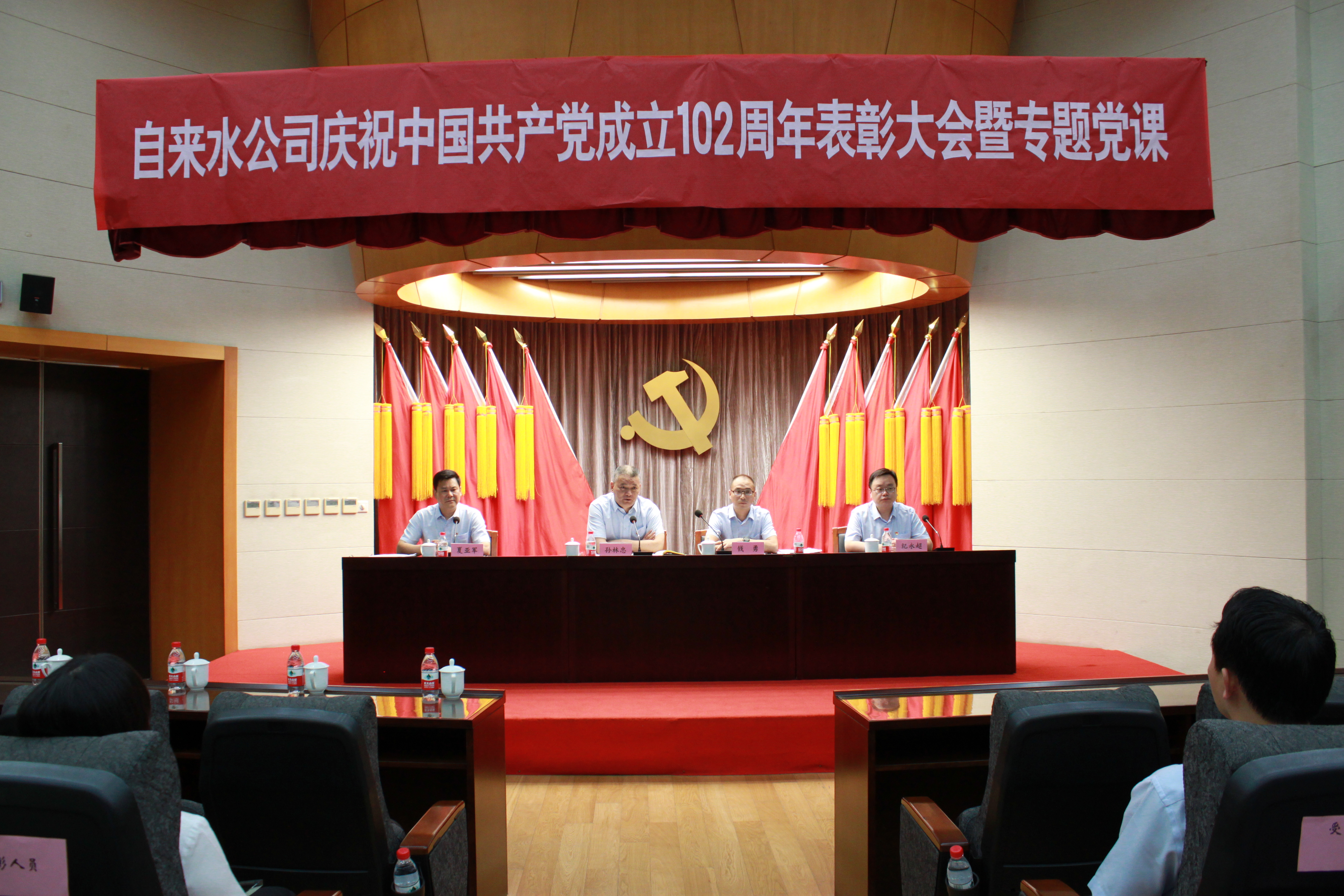 7月5日下午,市自來水公司召開慶祝建黨102周年主題大會暨專題黨課培訓,公司領導班子成員、全體中層干部、受表彰對象和優(yōu)秀團員等120人參加大會。大會由公司黨委委員、紀委書記、工會主席夏亞軍同志主持。