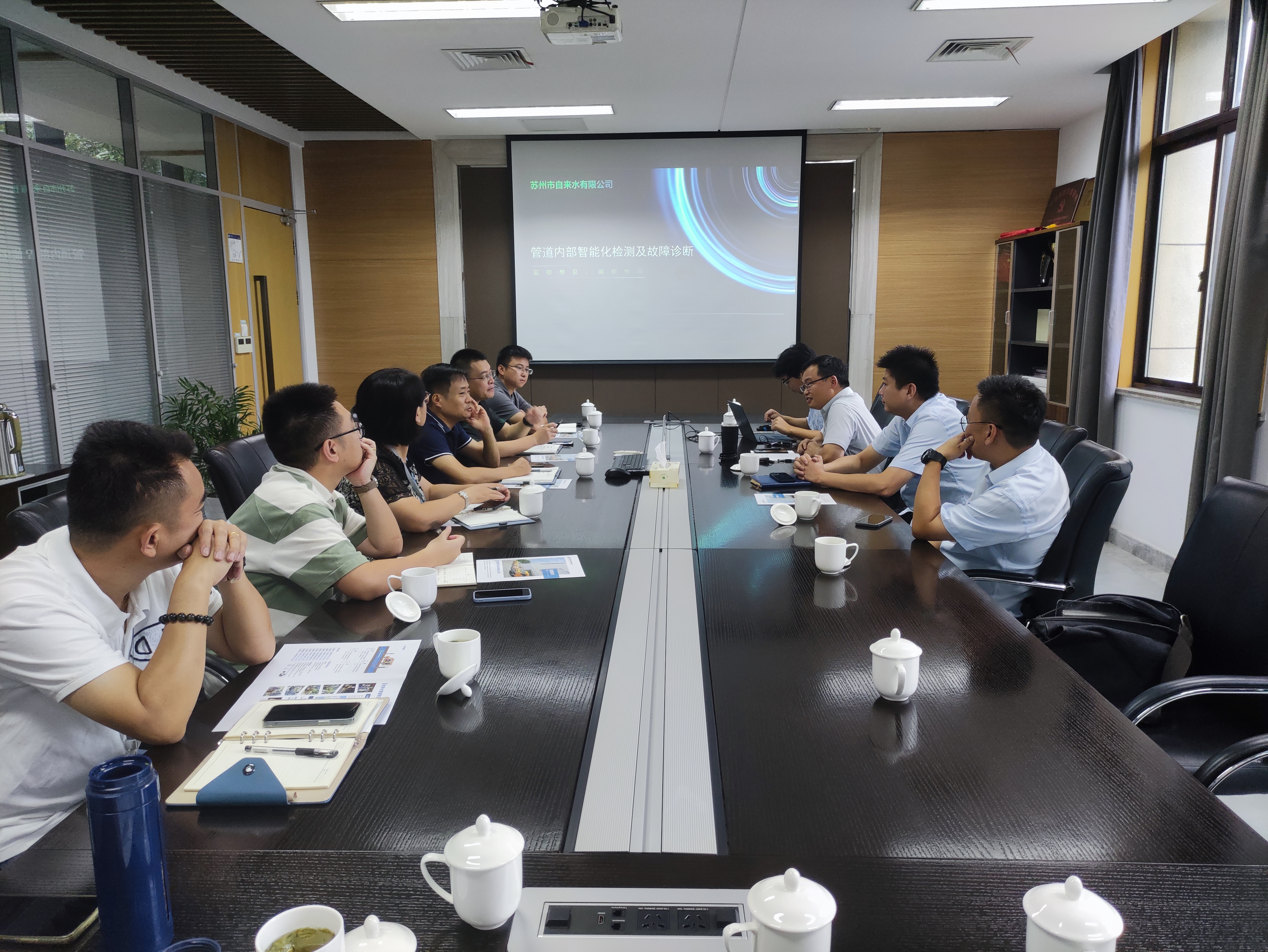 推廣交流會(huì)上,公司與會(huì)代表從帶壓檢測(cè)技術(shù)的發(fā)展背景、檢測(cè)原理、作業(yè)流程等方面入手,結(jié)合近年來(lái)公司多次獨(dú)立完成帶壓檢測(cè)全流程作業(yè)的實(shí)踐經(jīng)驗(yàn),向其他水司作了生動(dòng)且詳實(shí)的介紹,雙方就園區(qū)水司和吳江水司重點(diǎn)關(guān)心的帶壓檢測(cè)技術(shù)實(shí)地應(yīng)用場(chǎng)景、影響因素、工作特點(diǎn)、使用成本等問(wèn)題進(jìn)行了細(xì)致的解答,深入交流探討了智慧化管網(wǎng)管理經(jīng)驗(yàn)。