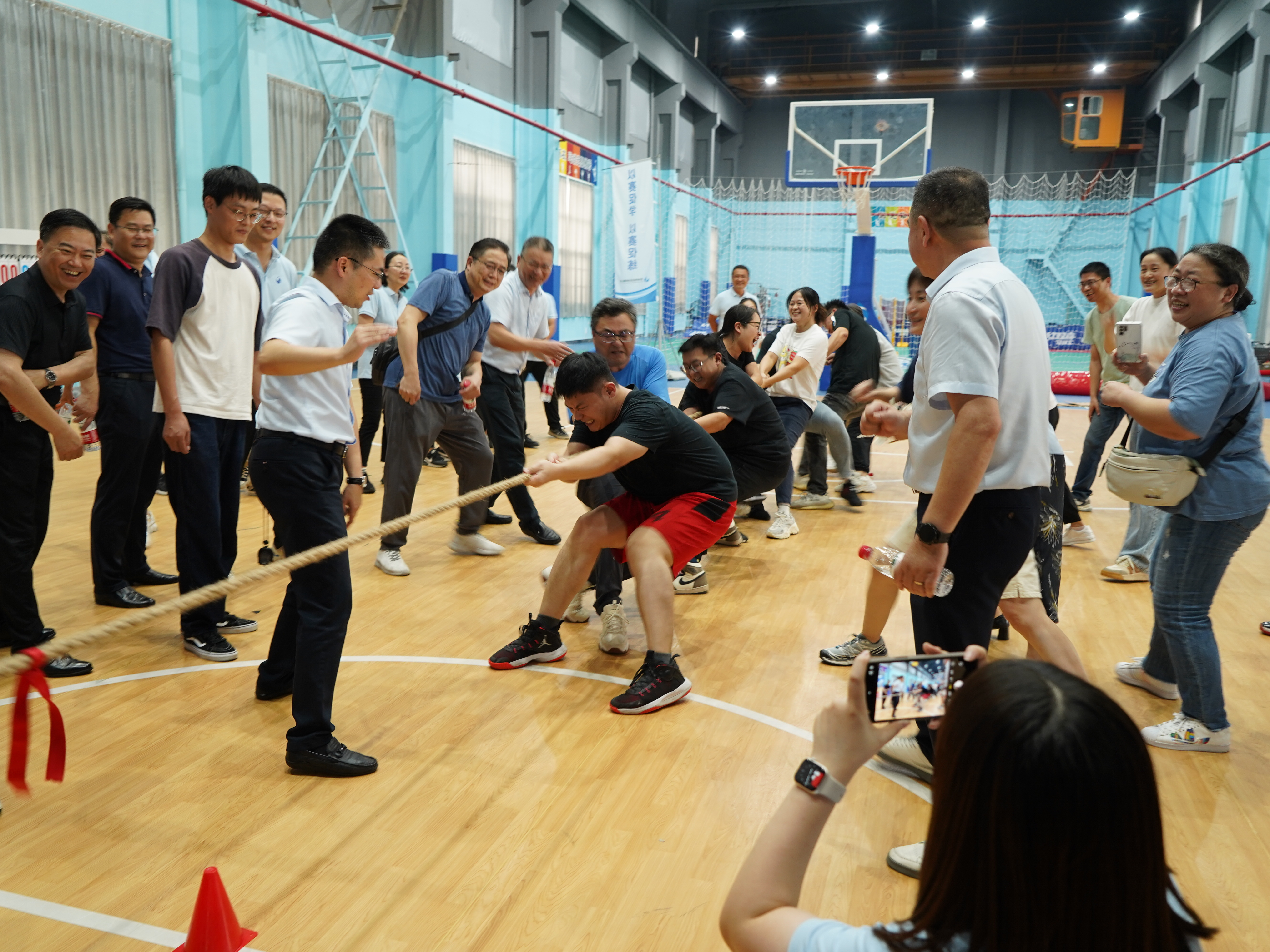 公司黨委委員、紀委書記、工會主席夏亞軍為運動會致辭,公司黨委書記、董事長孫林忠宣布比賽開始。本次運動會設(shè)立了摜蛋、籃球、羽毛球、桌游、團體趣味接力賽以及拔河比賽等多個項目,公司科室代表隊、制水分公司代表隊、售水分公司代表隊、表業(yè)公司代表隊、木瀆水司代表隊、胥口水司代表隊等近200名職工踴躍參加。運動會現(xiàn)場氣氛高漲,職工們發(fā)揮各自特長、互相打氣助威,為了團隊榮譽奮力拼搏,留下了一個個讓人回味的精彩瞬間。