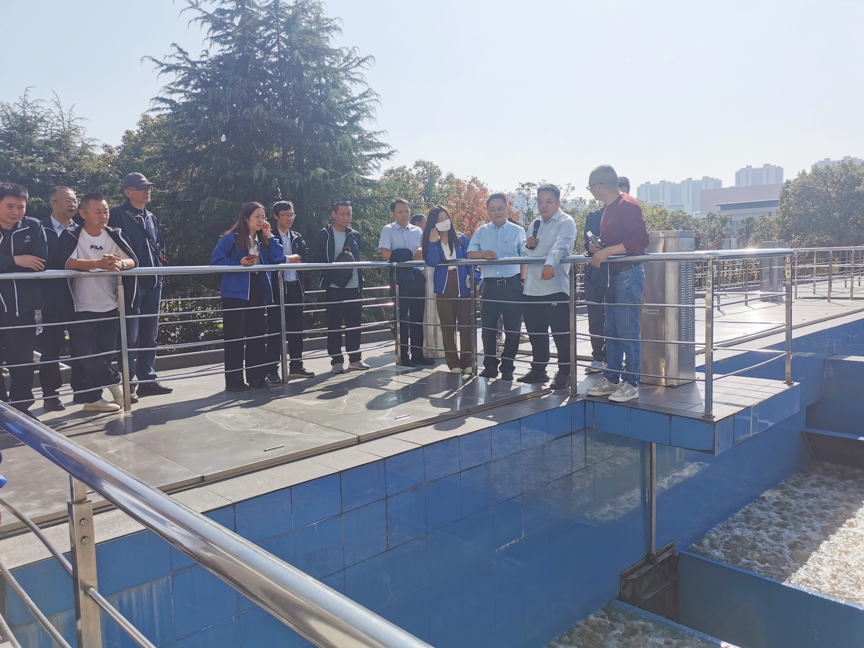考察組一行首先赴運控中心,詳細了解了從“源頭”到“龍頭”的各項工作情況,互相探討水廠工藝控制及管網(wǎng)信息化管理等重要內(nèi)容,同時針對智慧水廠建設工作進一步展開交流。隨后,考察組來到相城水廠和胥江水廠,現(xiàn)場參觀了水廠沉淀池、砂濾池及加藥間等地,并就深度處理工藝和水廠管理運行模式進行深入討論。