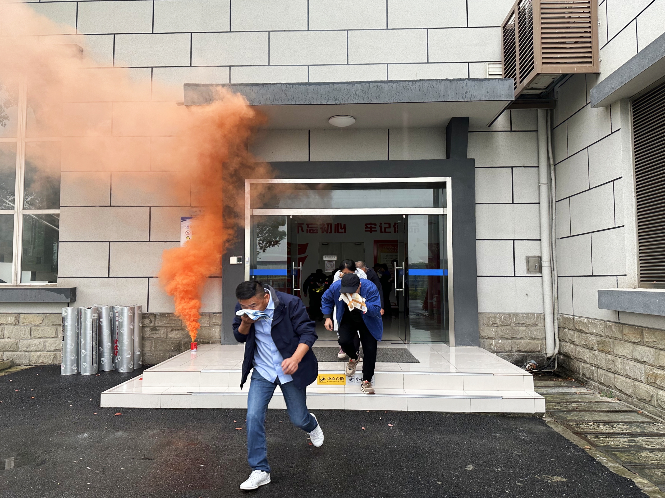 演練前夕,參演人員集中觀看了“火災(zāi)案例警示教育片”,安全員對大家進(jìn)行消防安全知識的普及。培訓(xùn)結(jié)束后,相城水廠中控室一樓大廳內(nèi)響起消防演習(xí)煙霧的警報(bào)聲,逃生演練正式開始。大廳負(fù)責(zé)人第一時間到崗,協(xié)助指揮職工隊(duì)伍疏散撤離,大家按照要求彎腰弓身,用毛巾捂著口鼻快速撤離到安全區(qū)域,整個“逃離”過程井然有序。隨后,參演隊(duì)伍在消防維保專業(yè)人員的指導(dǎo)下開展滅火演練,各滅火小組迅速進(jìn)入狀態(tài),手持干粉滅火器精準(zhǔn)撲滅火焰。