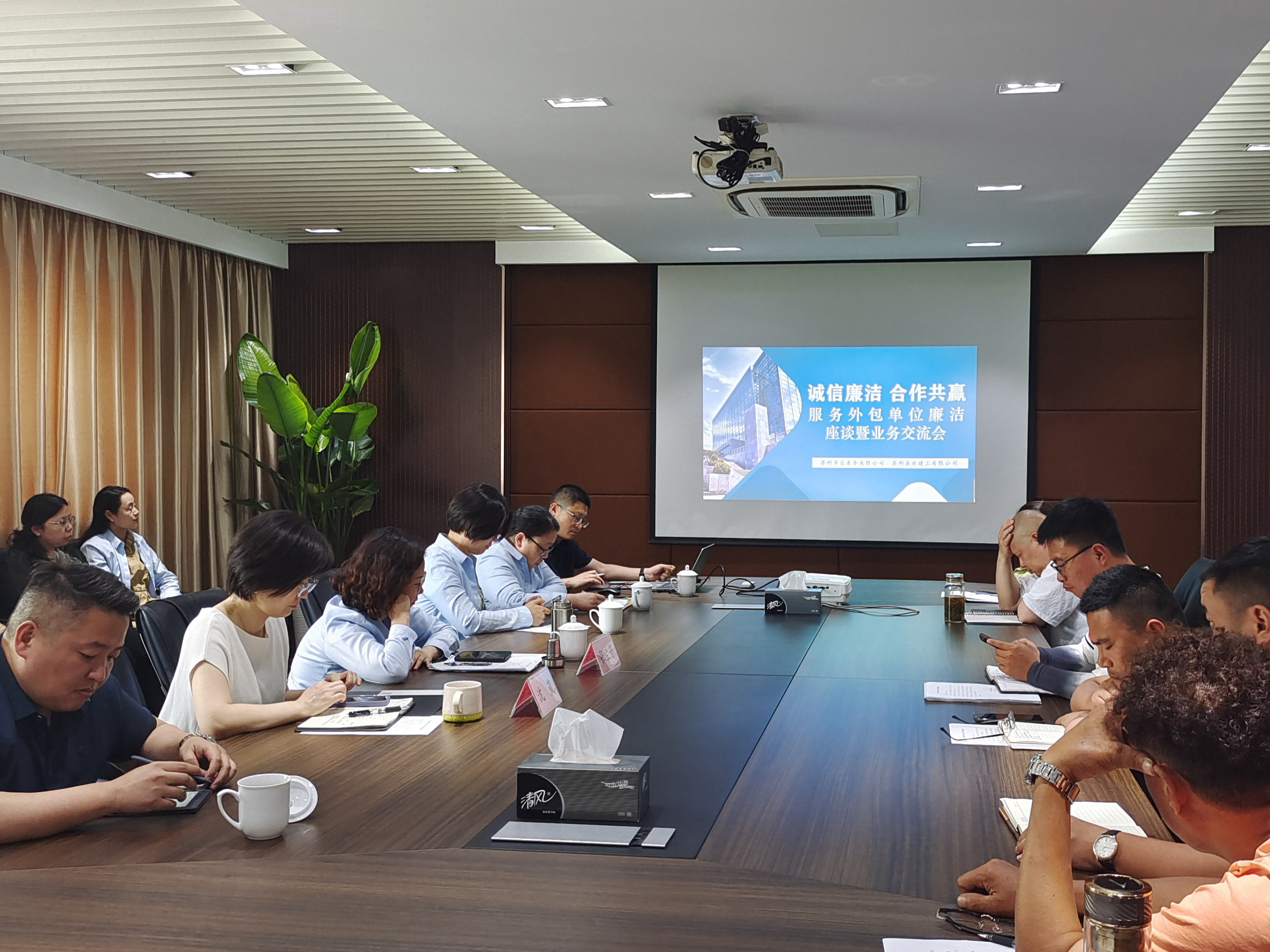 為進(jìn)一步強(qiáng)化工程建設(shè)領(lǐng)域廉潔風(fēng)險(xiǎn)防控,近日,市自來(lái)水公司與蘇水建工公司聯(lián)合召開(kāi)“誠(chéng)信廉潔·合作共贏”服務(wù)外包單位廉潔座談暨業(yè)務(wù)交流會(huì)。