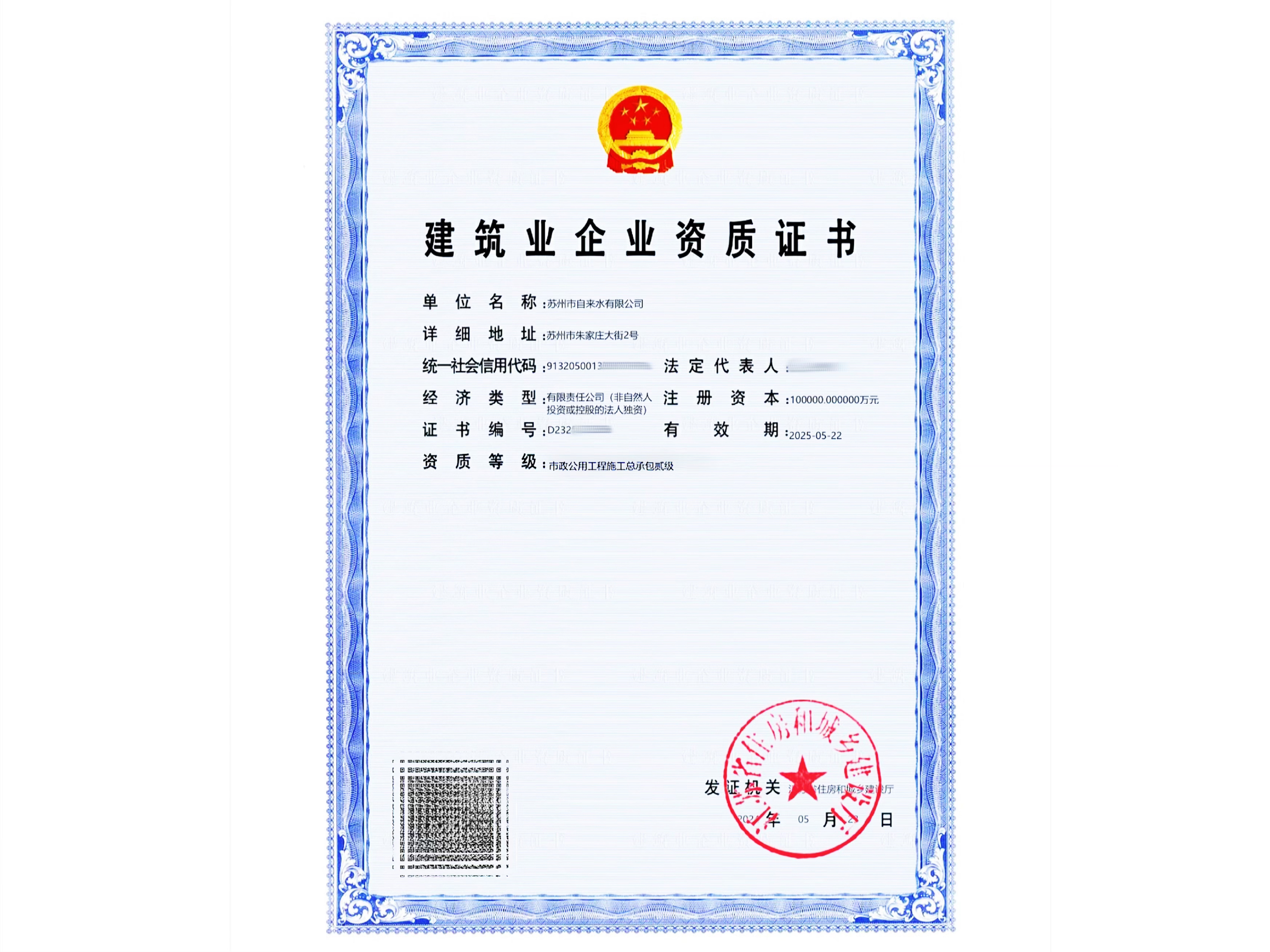 近日,公司完成建設(shè)工程企業(yè)資質(zhì)證書換領(lǐng)工作,經(jīng)資質(zhì)主管部門核準(zhǔn),成功取得市政公用工程施工總承包貳級(jí)資質(zhì)。
