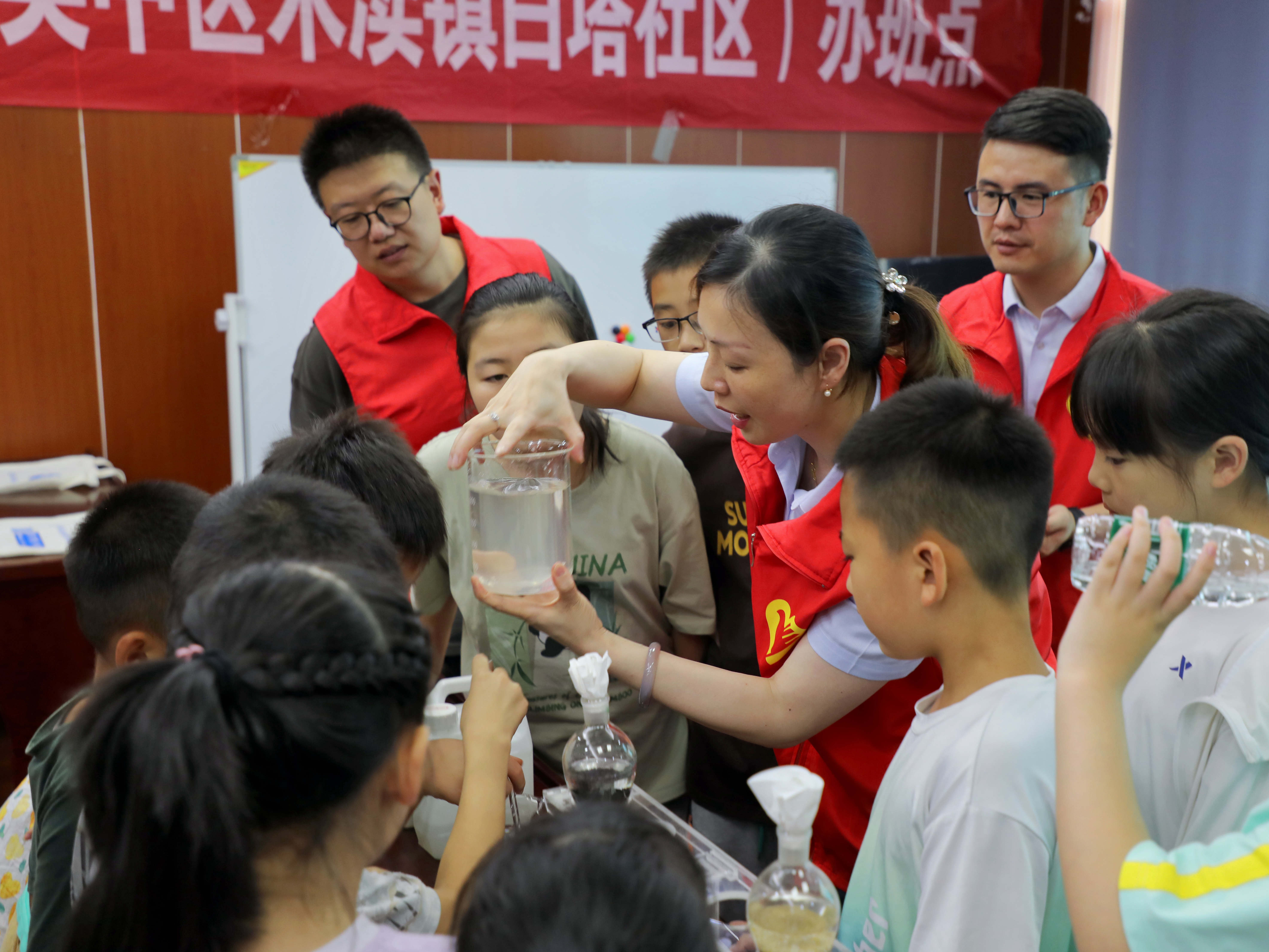 “水真的變清澈啦,好神奇呀!”社區(qū)的青少年活動中心里,孩子們目不轉(zhuǎn)睛地盯著實驗器具,發(fā)出一聲聲感嘆。