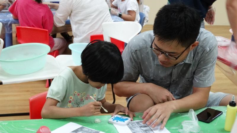 志愿者和孩子一一配對(duì),由培智部老師示范指導(dǎo),一起共同完成海洋水寶寶的玩具制作。制作完成后,志愿者們輔助孩子進(jìn)行作品展示,并鼓勵(lì)孩子們秀出個(gè)人才藝。一個(gè)個(gè)栩栩如生的螃蟹、小花、菠蘿、蘋(píng)果等式樣的海洋寶寶,如同魔幻精靈般的在水中穿梭,現(xiàn)場(chǎng)歡笑連連?;顒?dòng)結(jié)束后,孩子們久久不愿離開(kāi)活動(dòng)室,爭(zhēng)相與作品合影留念。