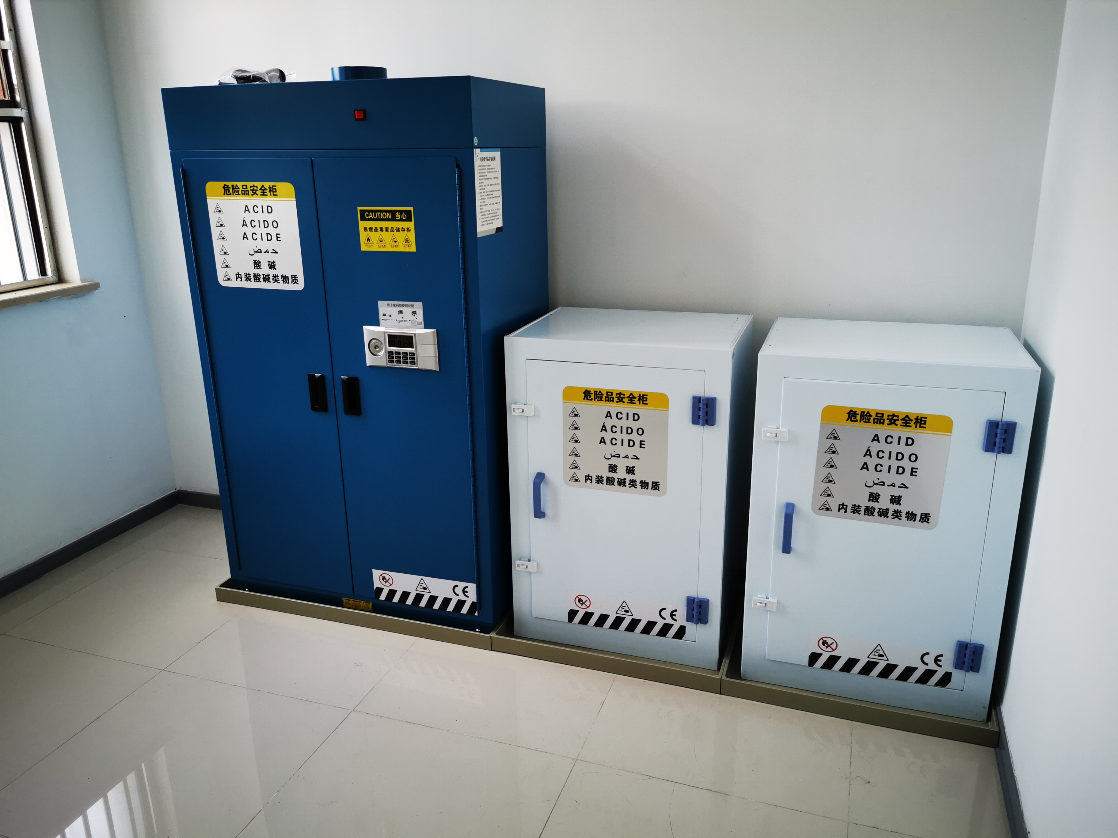整改后,各廠實(shí)驗(yàn)室藥品間配置了便于分類存放化學(xué)品試劑的專業(yè)防爆柜和酸堿柜,同時配備了防爆空調(diào)、防爆燈、防爆風(fēng)機(jī)、防爆開關(guān)和靜電消除器等設(shè)備,大幅提升了藥品存放間的防爆等級。不僅如此,為了預(yù)防有機(jī)蒸汽泄漏及造成火災(zāi)的發(fā)生,實(shí)驗(yàn)室還配備了有機(jī)氣體偵測聯(lián)動排風(fēng)系統(tǒng)、消防報警系統(tǒng)和自動滅火裝置,有效提高了實(shí)驗(yàn)室的安全等級。