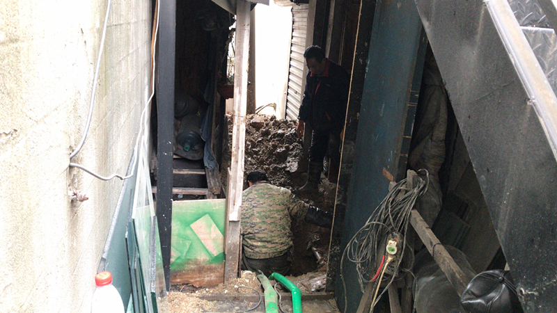 這天上午,用戶來電反映孫武路新藝玻璃店東側(cè)弄堂內(nèi)自來水管爆裂。搶修人員迅速趕到現(xiàn)場,確認為DN100供水管道爆裂。由于破損嚴重,水流已經(jīng)灌入臨近商鋪,搶修人員第一時間關(guān)閉閥門,進行開挖,并聯(lián)系保險公司理賠。