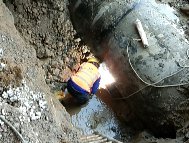 10月15日,供水管網(wǎng)所奮力作戰(zhàn),完成312國道、陽山花園二區(qū)對面路段的DN1800鋼管搶修工作。