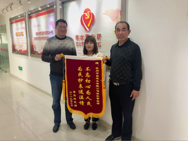 近日,供水營業(yè)所抄表科收到用戶送來印有“不忘初心為人民,為民抄表送溫情”的錦旗,這也是本月供水營業(yè)所收到的第三面錦旗。短短幾字,是用戶的心意,更是我們供水服務的初衷。
