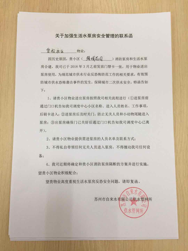 因合建泵房的特殊性,雙方結(jié)合反恐防范工作相關(guān)要求,就規(guī)范泵房反恐安全防范措施,進(jìn)出泵房人員權(quán)限,門口機(jī)對(duì)話功能及使用等工作內(nèi)容進(jìn)行協(xié)調(diào)溝通,并確認(rèn)了合建泵房的管理流程,為保障二次供水泵房安全平穩(wěn)運(yùn)行打下堅(jiān)實(shí)的基礎(chǔ)。