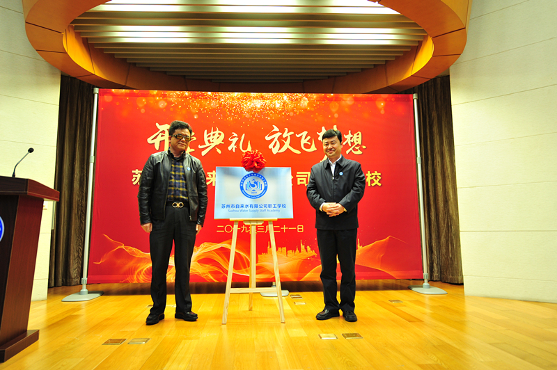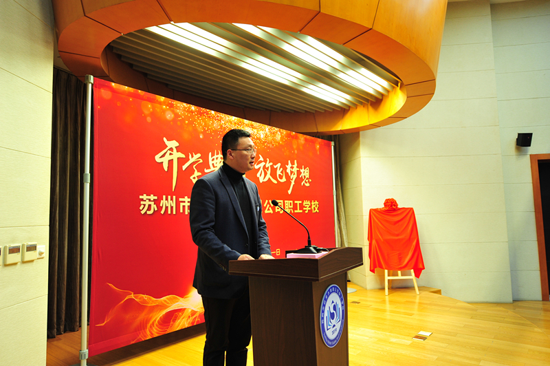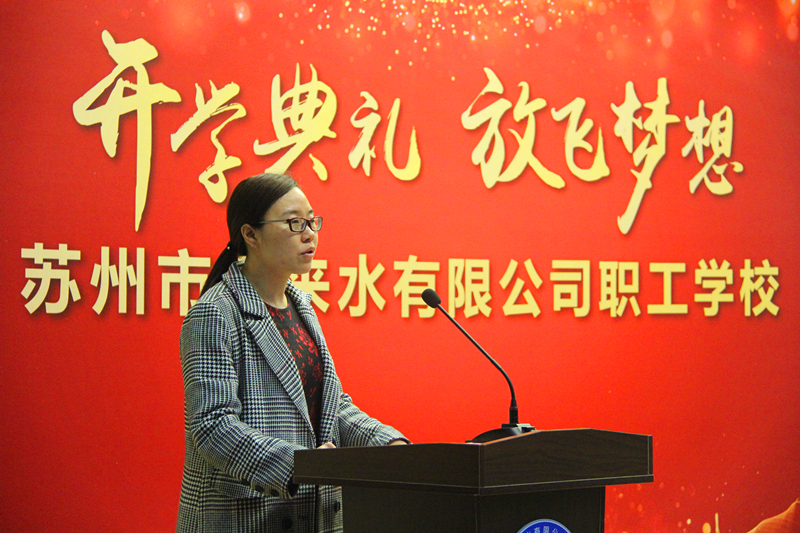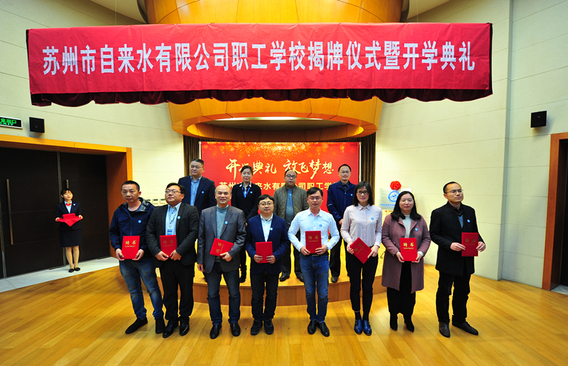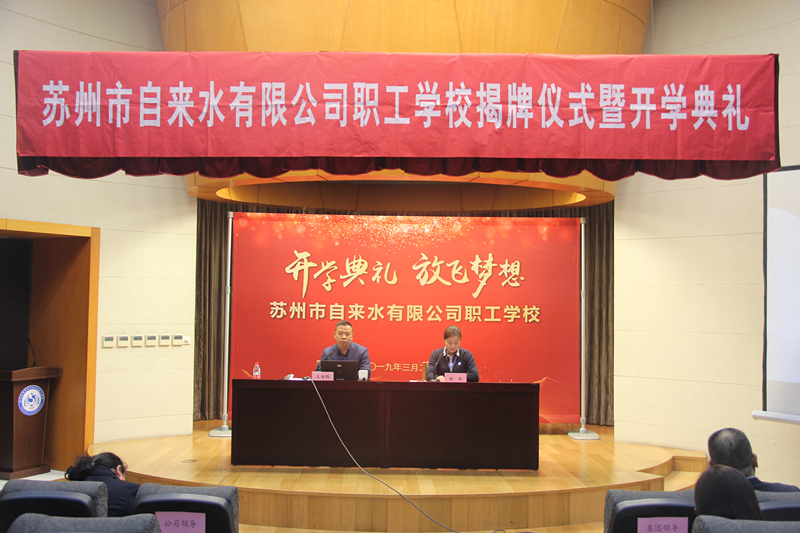 儀式開始前,市自來水公司黨委委員、總工程師蔣福春宣讀了《關于成立蘇州市自來水有限公司職工學校的通知》。公司黨委書記、董事長王意宏代表領導班子致詞,王董講到,水司職工學校是深入學習貫徹習近平新時代中國特色社會主義思想的實踐要求,是推進公司高質量發(fā)展的客觀需要,希望學員們好好珍惜,認真聽講,勤于思考,確保學有所獲、學有所得、學用相長,同時要謀發(fā)展,算好職工學?!伴L遠賬”;要嚴標準,練就崗位技能“硬本領”;要強舉措,打通職工晉升“多通道”;要樹品牌,亮出對外交流“新名片”。