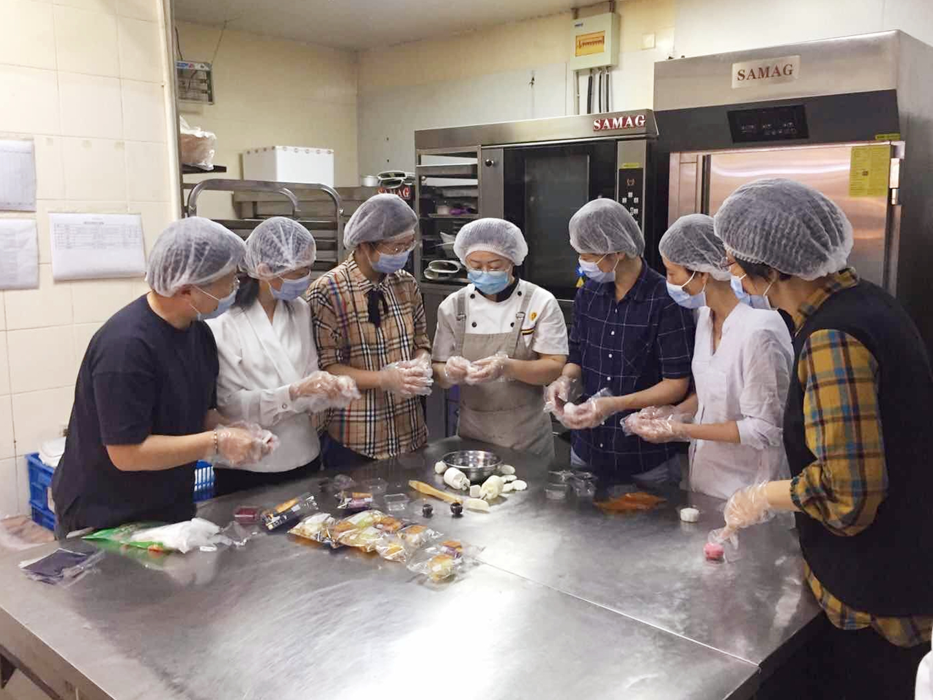 活動(dòng)現(xiàn)場(chǎng),烘焙師為職工們?cè)敿?xì)講解和示范了月餅的制作步驟,大家在一旁認(rèn)真聽講,努力按照烘焙師的指導(dǎo)上手操作。雖然制作手法不熟練,但職工們都做得有模有樣,一枚枚精致的月餅相繼出爐。品嘗著軟糯可口的愛心月餅,大家積極交流烘焙心得,現(xiàn)場(chǎng)氣氛融洽、活躍。活動(dòng)后,職工們將親手制作的月餅仔細(xì)包裝,分發(fā)給堅(jiān)守在一線的值班人員,把心意融進(jìn)月餅、把關(guān)切送給同事。