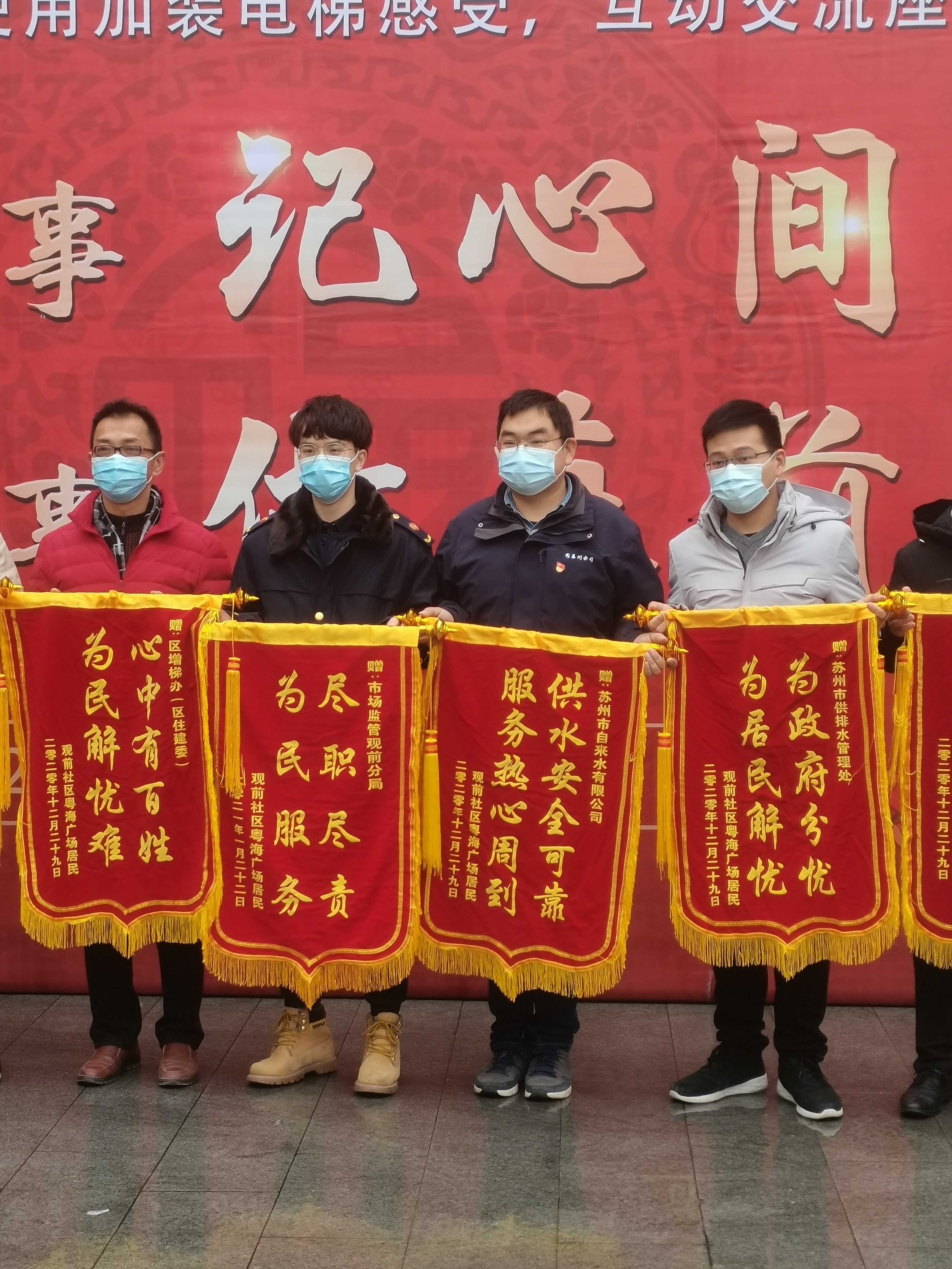 近日,供水管網(wǎng)所應(yīng)邀參加觀前社區(qū)加裝電梯居民答謝會(huì),旨在感謝市自來水公司在加裝電梯過程中的辛勞付出。公司供水管網(wǎng)所工作人員在答謝會(huì)上收到了居民贈(zèng)送的錦旗,供水工作獲得了居民的一致肯定。