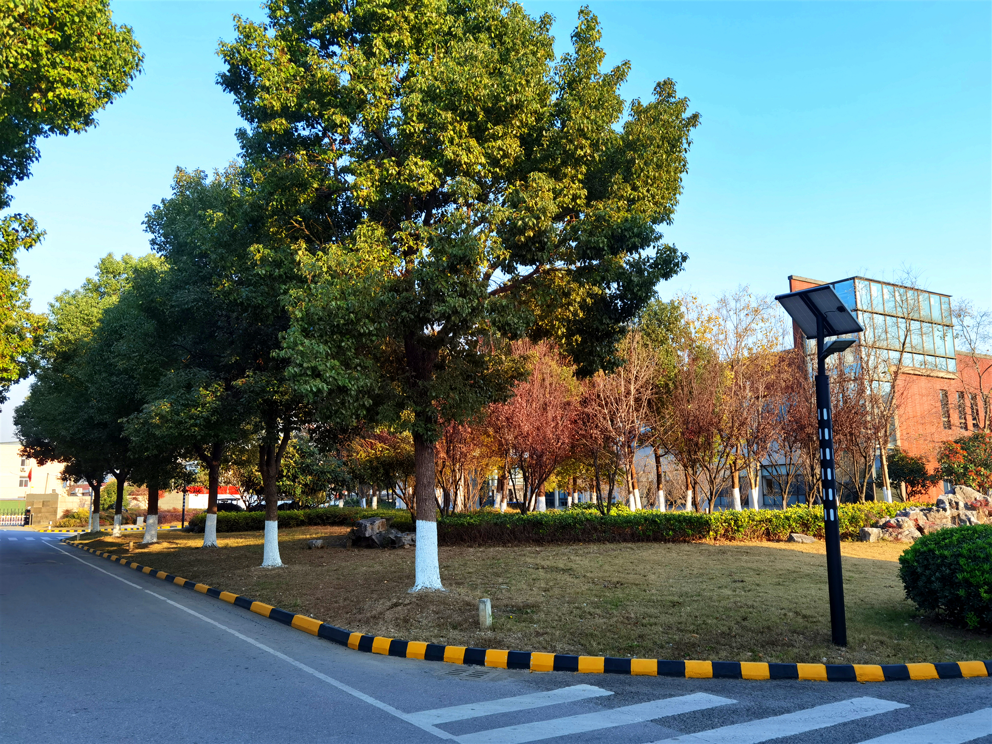 廠區(qū)植物的樹干部分都被刷上了一層白色石灰漿,對樹木木質(zhì)具有一定的殺菌、殺蟲作用,可以消除大部分寄生在樹中越冬的真菌、細(xì)菌和害蟲。更為重要的是,在晝夜溫度差大的情況下,樹干容易凍裂。在涂上石灰漿后,能夠反射40%—70%的陽光,這對防止樹干開裂有很好的保護作用。同時,水廠還將鐵樹等冬季休眠植物套上塑料薄膜來保溫,以免鐵樹低溫凍傷。