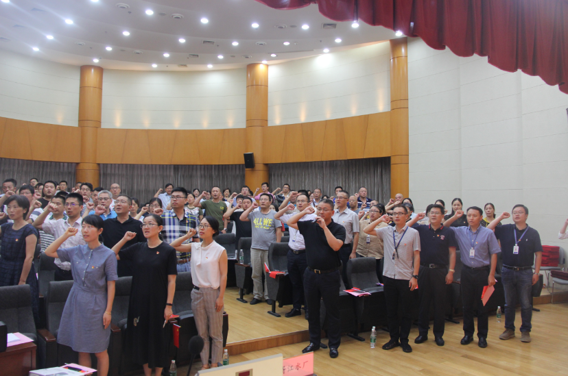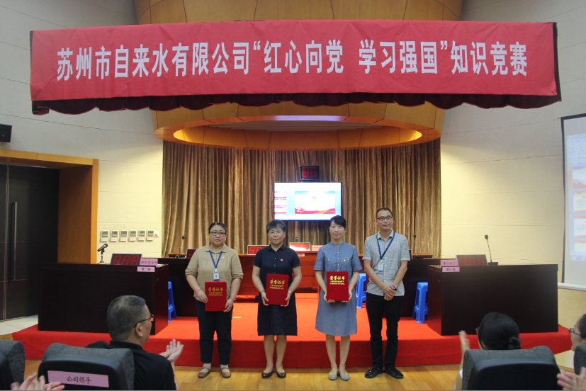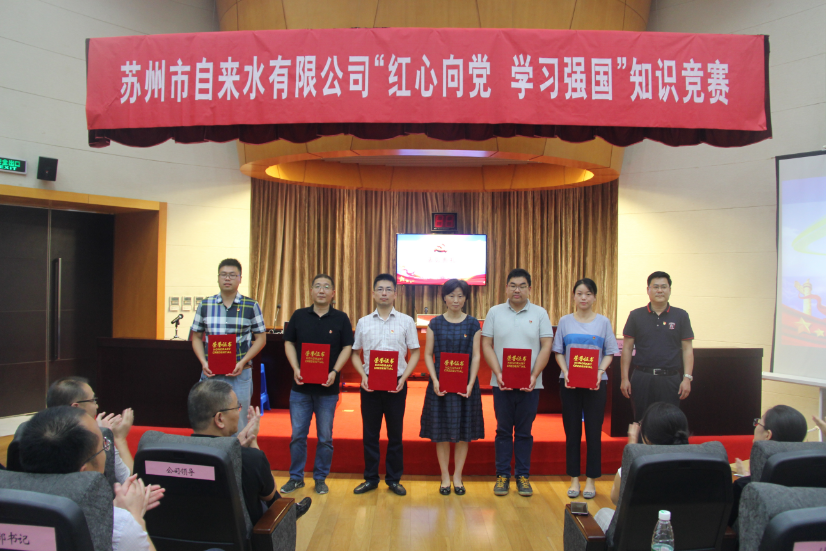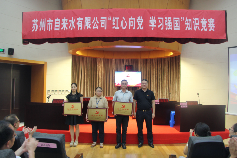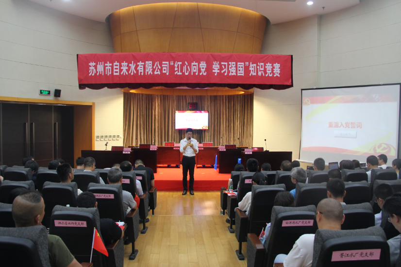 7月24日,室外驕陽似火,一樓報(bào)告廳里卻人頭攢動(dòng)、紅心閃耀,蘇州市自來水有限公司黨委班子、各黨支部書記、黨員、參賽選手一百余人濟(jì)濟(jì)一堂,共同慶祝建黨98周年,喜迎建國70周年。