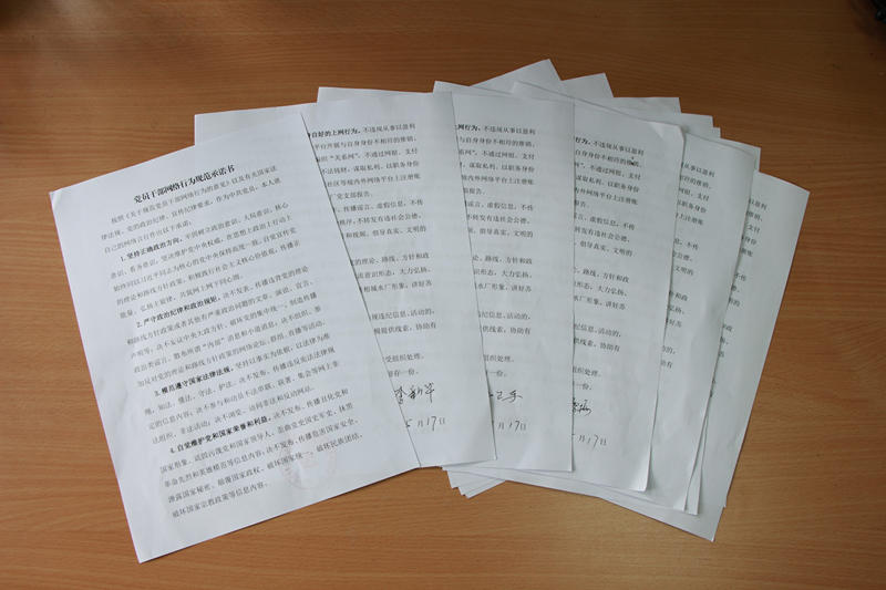 會(huì)上,支部傳達(dá)了《關(guān)于規(guī)范黨員干部網(wǎng)絡(luò)行為的意見》和《關(guān)于規(guī)范黨員干部網(wǎng)絡(luò)行為的實(shí)施辦法》文件精神,明確了規(guī)范黨員干部網(wǎng)絡(luò)行為的具體內(nèi)容,并通過兩個(gè)反面事例警示大家。隨后,支部與所有黨員簽訂《規(guī)范黨員干部網(wǎng)絡(luò)行為個(gè)人承諾書》,倡議黨員要以身作則、嚴(yán)以律己,規(guī)范網(wǎng)絡(luò)行為,不信謠、不傳謠,為促進(jìn)形成健康向上、風(fēng)清氣正的網(wǎng)絡(luò)環(huán)境做出應(yīng)有的貢獻(xiàn)。最后,支部帶領(lǐng)大家重點(diǎn)學(xué)習(xí)了解了掃黑除惡專項(xiàng)斗爭(zhēng)有關(guān)內(nèi)容,并向兩位在5月過政治生日的黨員送上賀卡。