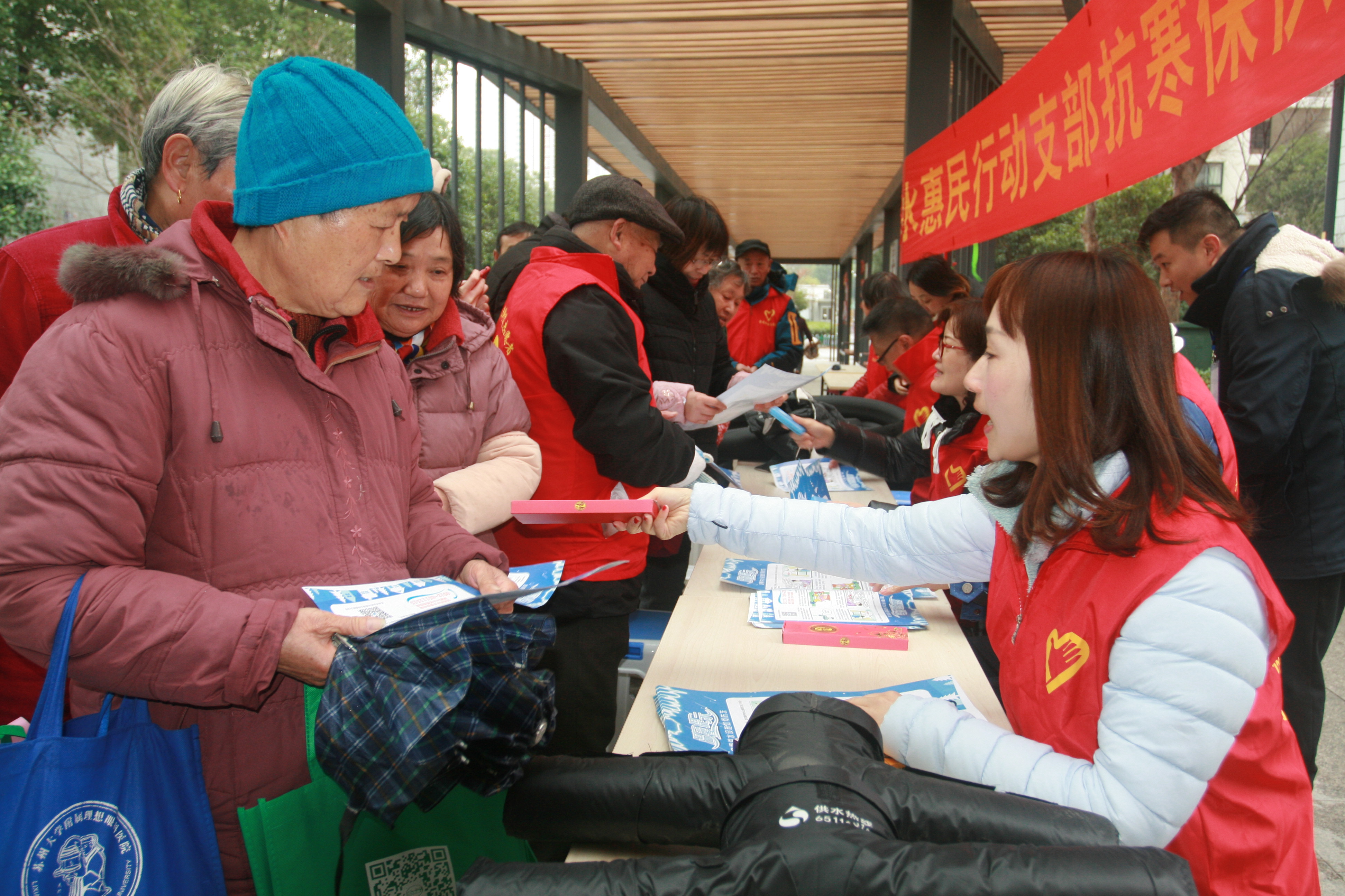 志愿者們分成兩隊(duì),一隊(duì)在社區(qū)擺好長(zhǎng)桌,拉起橫幅,向居民發(fā)放抗寒保供知識(shí)宣傳單、公司名片二維碼、水表水管保溫套等,在發(fā)放的同時(shí),還不忘叮囑居民關(guān)門關(guān)窗,做好水表、水管等供水設(shè)施防寒防凍措施;另一隊(duì)則主動(dòng)去往居民家中,查看單元閥、居民供水立管、水表箱保溫等情況,給裸露水表、水管套好保溫套。重點(diǎn)排查貧困用戶、獨(dú)居老人的供水設(shè)施保溫情況,對(duì)特殊人群予以關(guān)心和幫助。