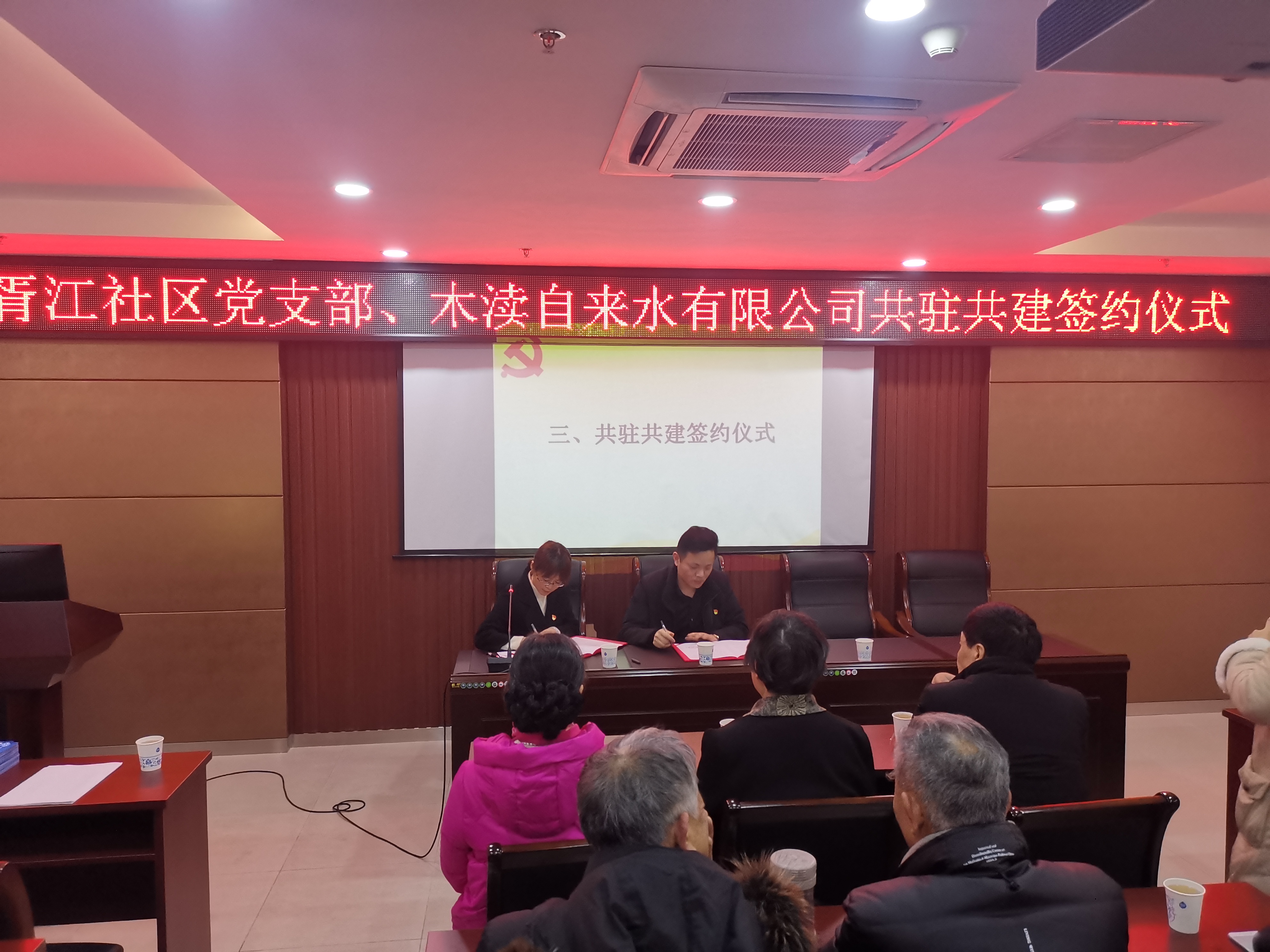 活動中,本著“資源整合、優(yōu)勢互補(bǔ)、共建組織、共謀發(fā)展”的工作思路,木瀆水司黨支部與胥江社區(qū)黨支部雙方代表簽署了結(jié)對共建協(xié)議。隨后,支部志愿者王天昕向大家講授《冬季水表防凍小技巧》,并發(fā)放抗寒保供知識宣傳單,叮囑大家關(guān)門關(guān)窗,做好水表、水管等供水設(shè)施。